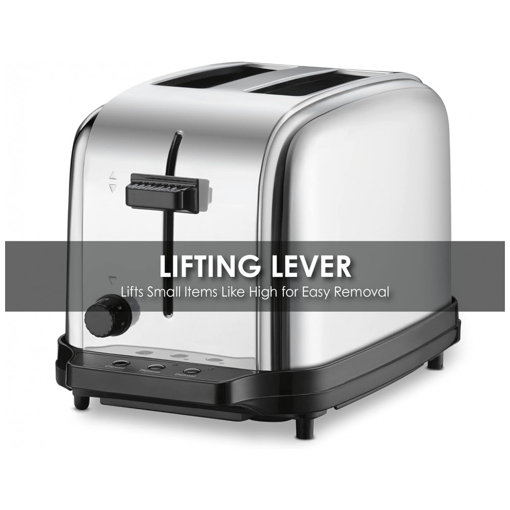 A alavanca de elevação eleva itens pequenos, como muffins ingleses, para facilitar a remoção.