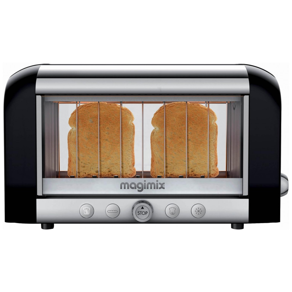 Torradeira Elétrica 2 Fatias com 4 Níveis de Tostagem Função Descongelar e Bandeja de Migalhas Removível 110V 1450W Magimix Preta