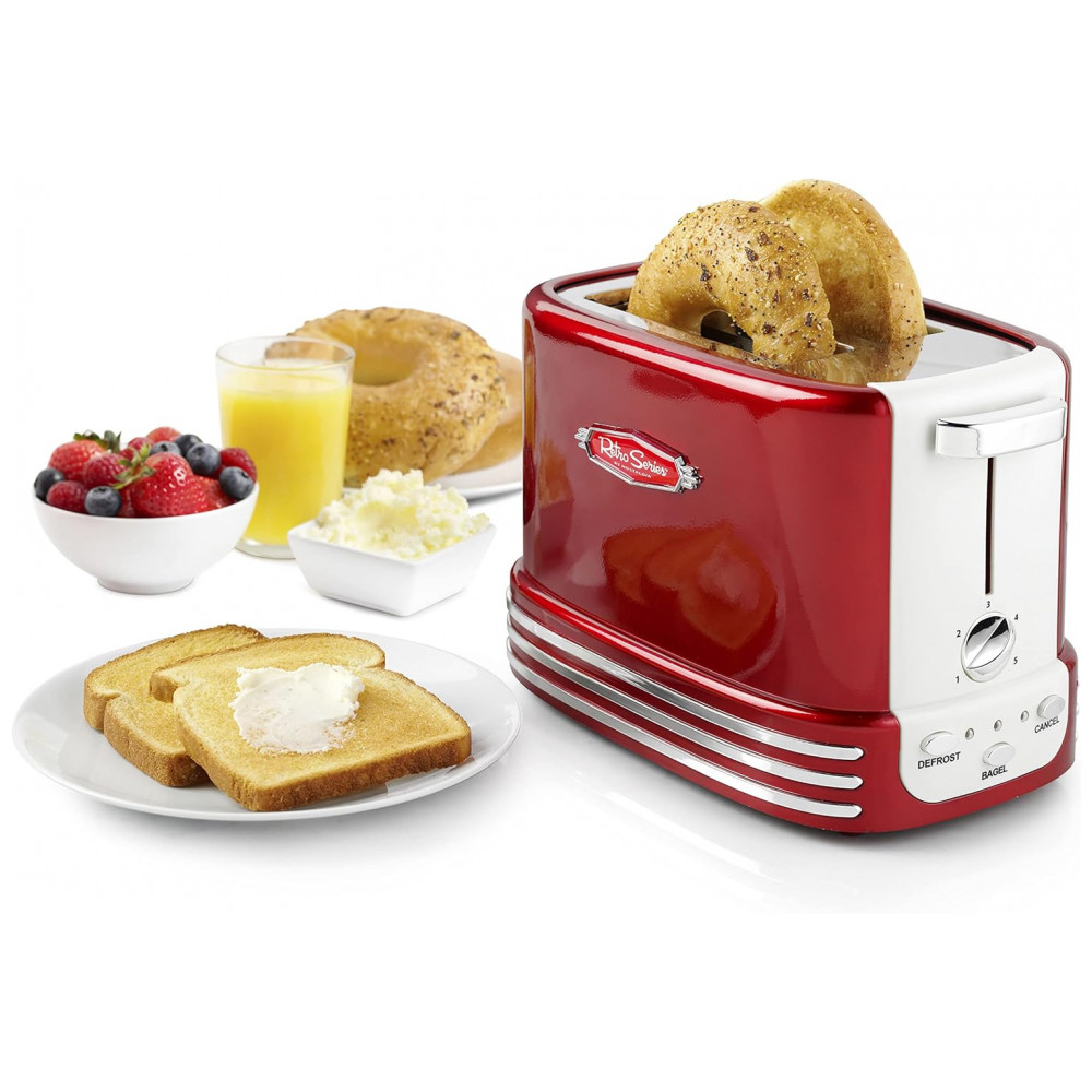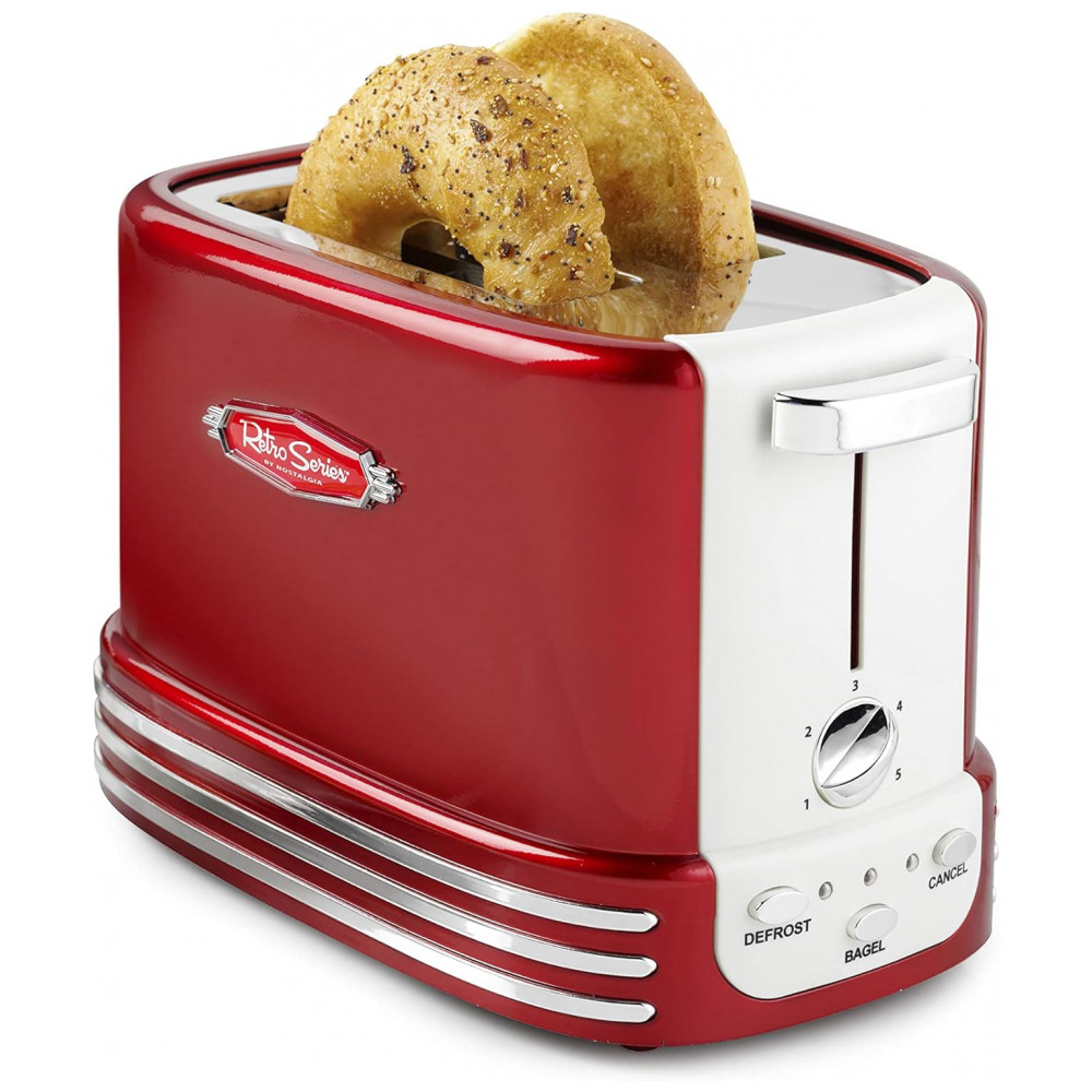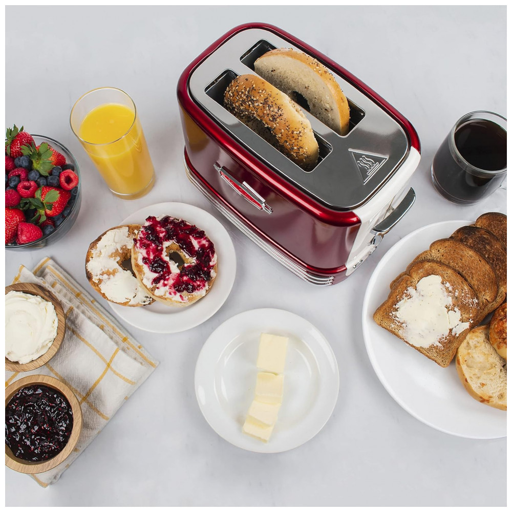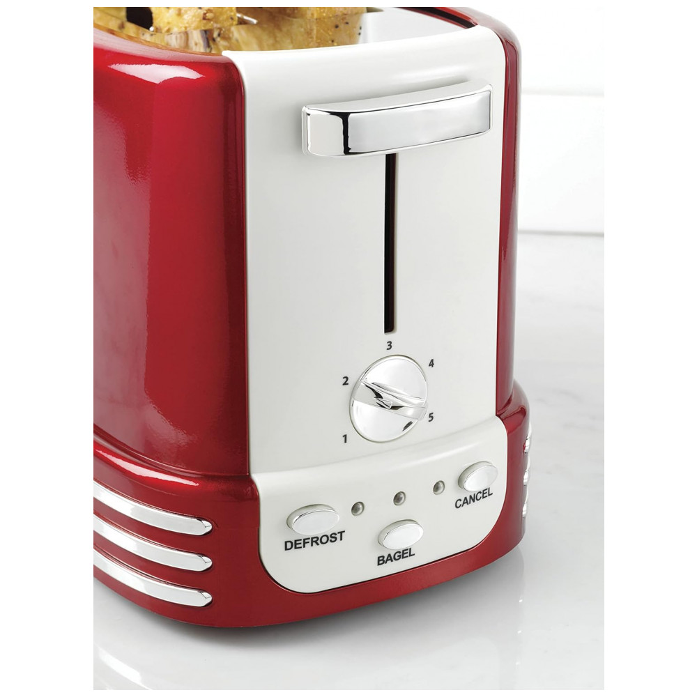 Torradeira Elétrica 2 Fatias com 5 Níveis de Tostagem Função Descongelar e Bandejas de Migalhas Removíveis 110V 900W Nostalgia Retrô Vermelha