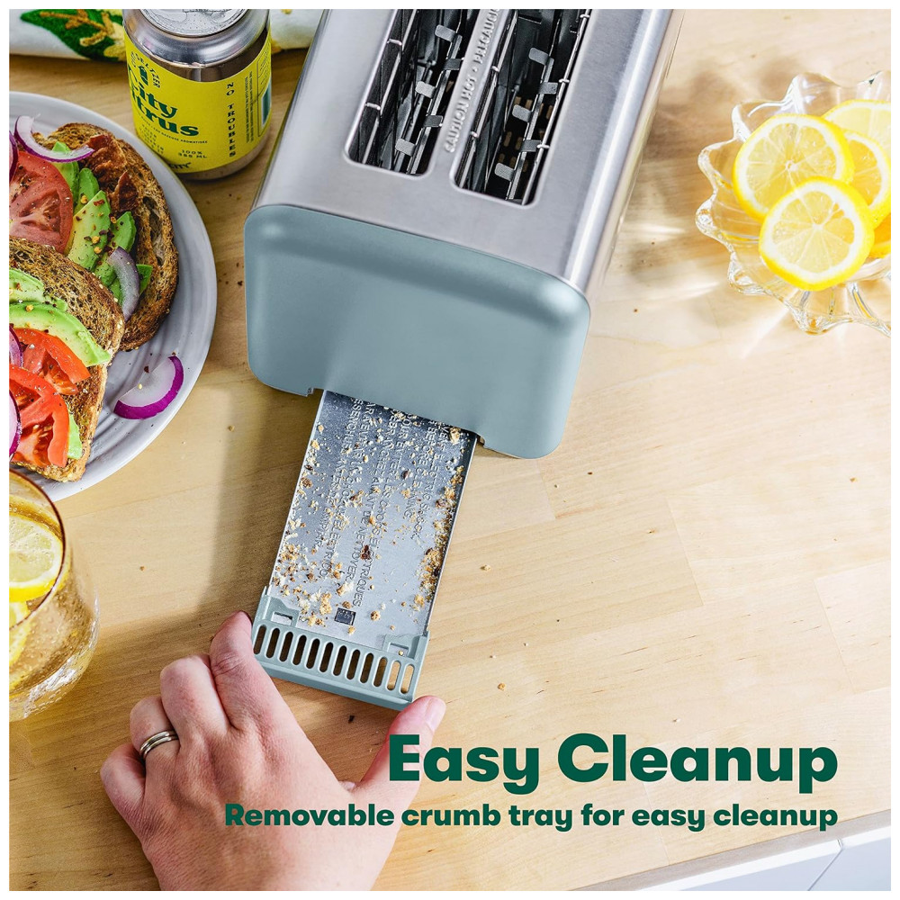 SLOTS EXTRA LARGOS Esta torradeira possui slots extra largos que cabem facilmente em bagels grossos, pães artesanais, torradas ao estilo do Texas e muito mais As guias autocentrantes garantem um escurecimento uniforme e uma alavanca de alta elevação permite fácil acesso.