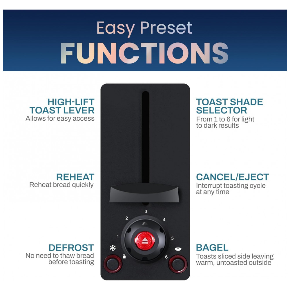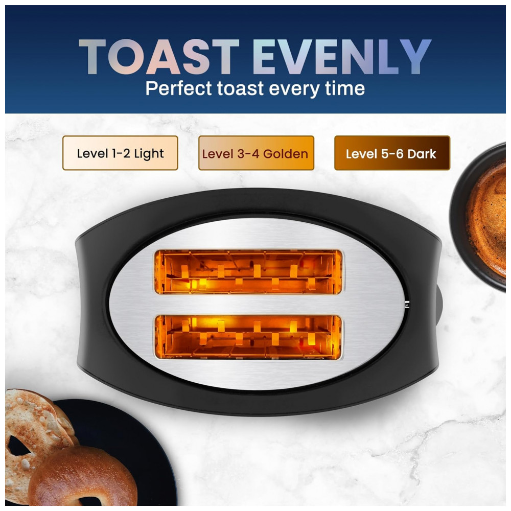 Torradeira Elétrica 2 Fatias com 6 Níveis de Tostagem em Aço Inoxidável 110V Elite Gourmet ECT2428 Preta