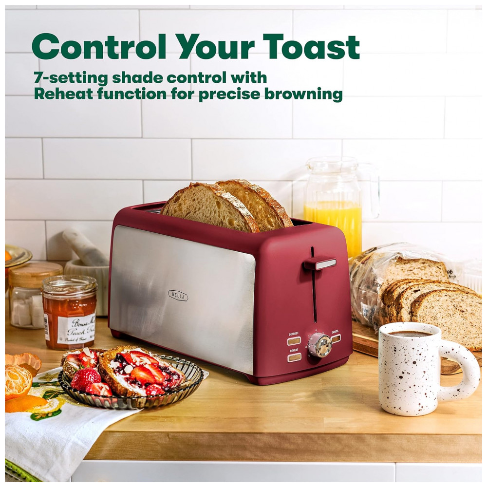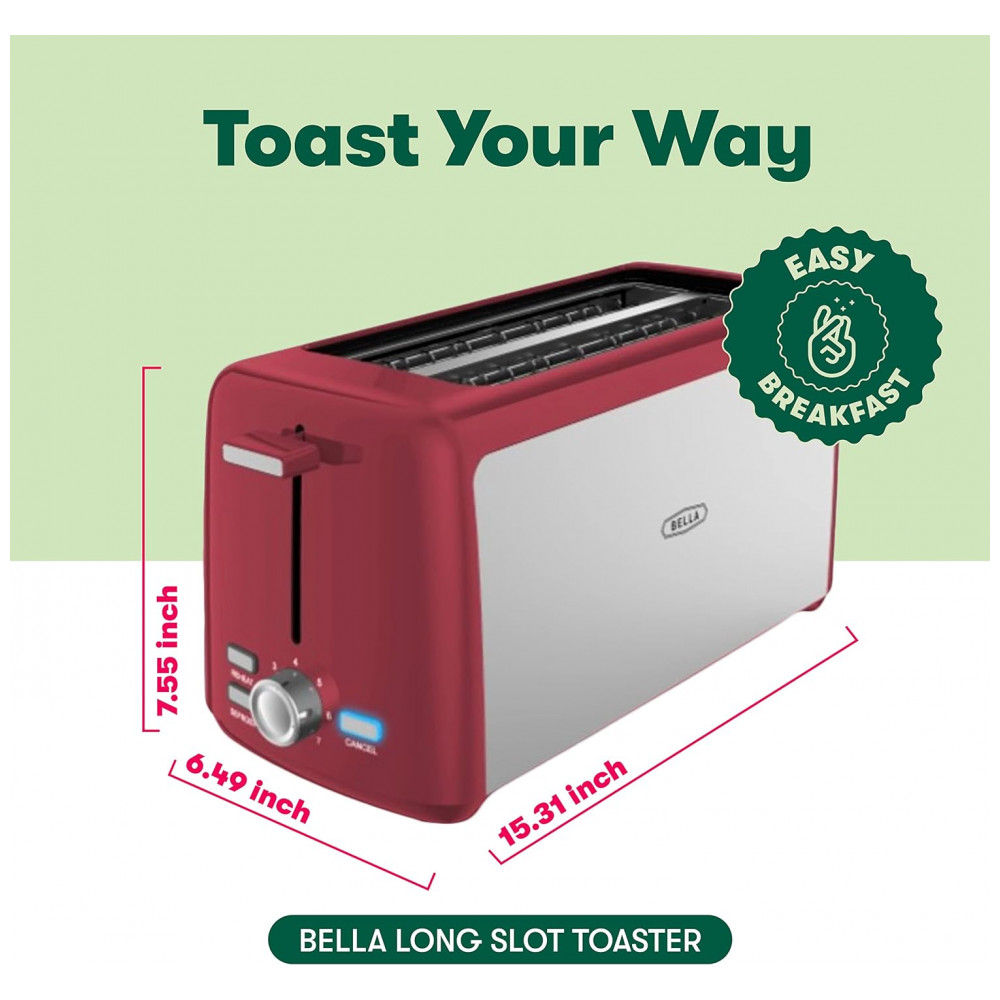 PARA OS AMANTES DE PÃO Muffins ingleses, torradas ao estilo do Texas, bagels, pratos doces e salgados… você pode fazer todos eles com esta linda torradeira de bagel da BELLA As aberturas largas cabem em qualquer tipo de pão para ajudá lo a fazer todas as suas receitas de café da manhã favoritas com facilidade