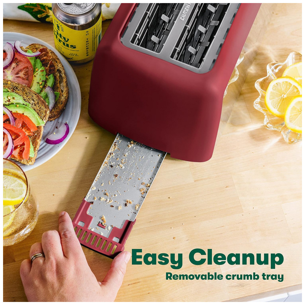 LIMPEZA FÁCIL SEM PROBLEMAS Limpar nossa torradeira fina é muito fácil Com uma conveniente bandeja de migalhas suspensa, você não terá que perder tempo limpando depois de si mesmo. O elegante acabamento fosco torna a limpeza desta torradeira de pão um pedaço de bolo