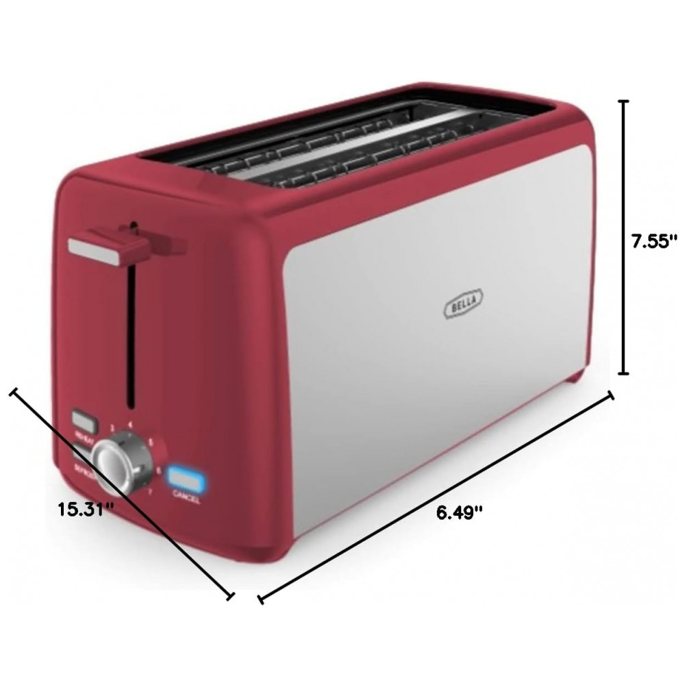 Torradeira Elétrica 2 Fatias com 7 Níveis de Tostagem 110V 1400W BELLA Vermelha e Prata