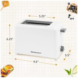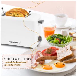 Torradeira Elétrica 2 Fatias com 7 Níveis de Tostagem e Bandeja de Migalhas Removível 110V 1300W Elite Gourmet ECT1027 Branca