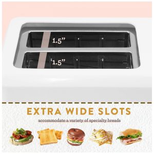 NÃO APENAS PARA TORRADAS Os slots extra largos de 3,81 centimetros e 7 níveis de escurecimento permitem torrar uma variedade de cafés da manhã e lanches. Torradas bagels, waffles, pães especiais ou lanches assados em massa folhada.