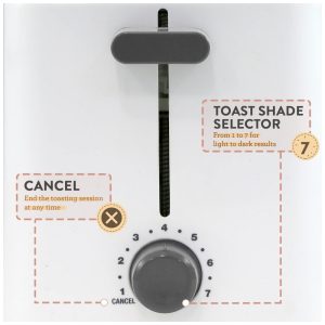 FUNÇÃO CANCELAR cancele facilmente qualquer ciclo de tostagem no meio da tostagem simplesmente ajustando o botão. Não há necessidade de empurrar a alavanca para reduzir o risco de danos.