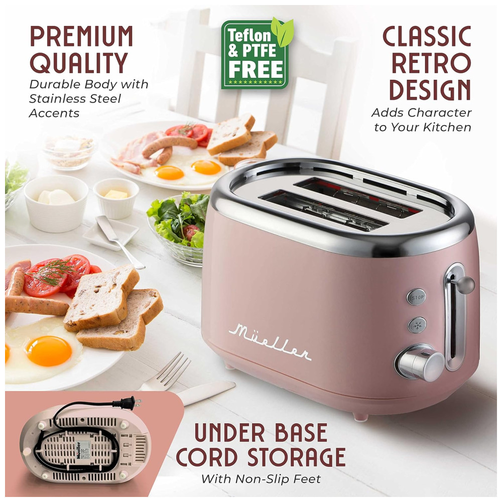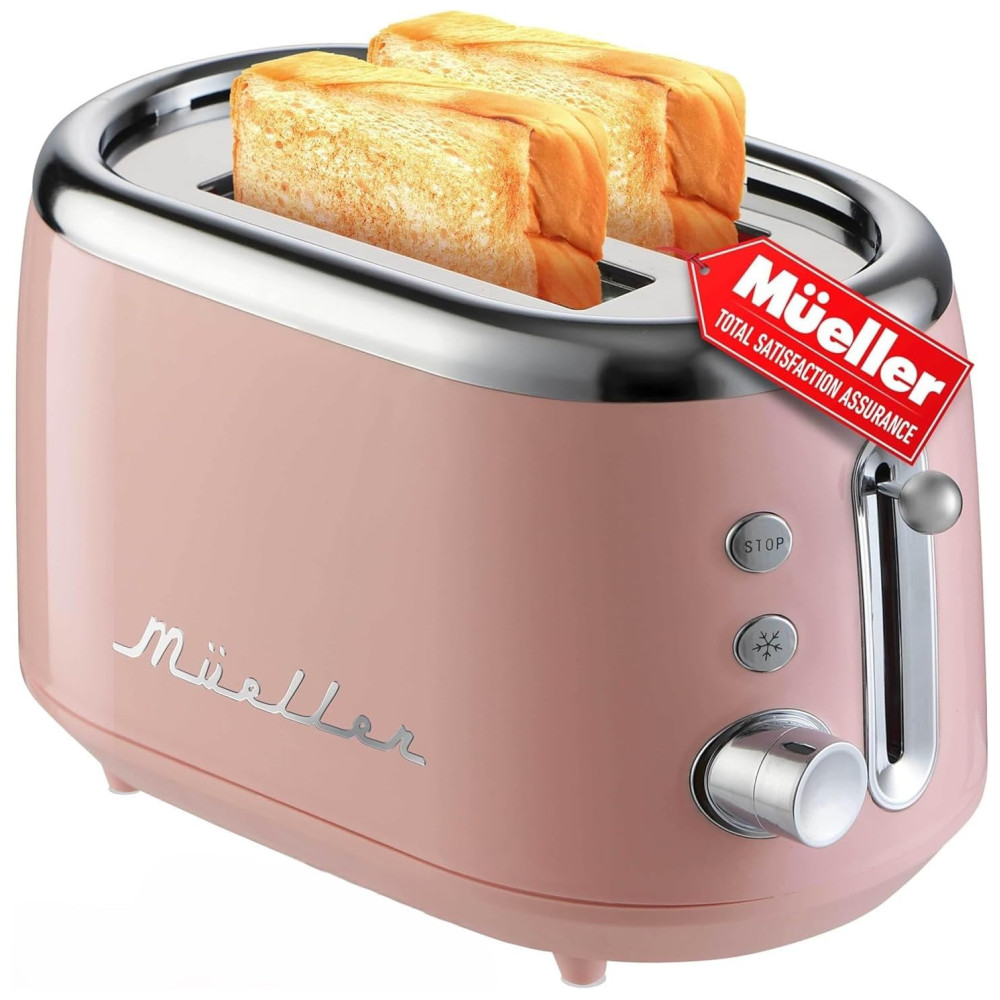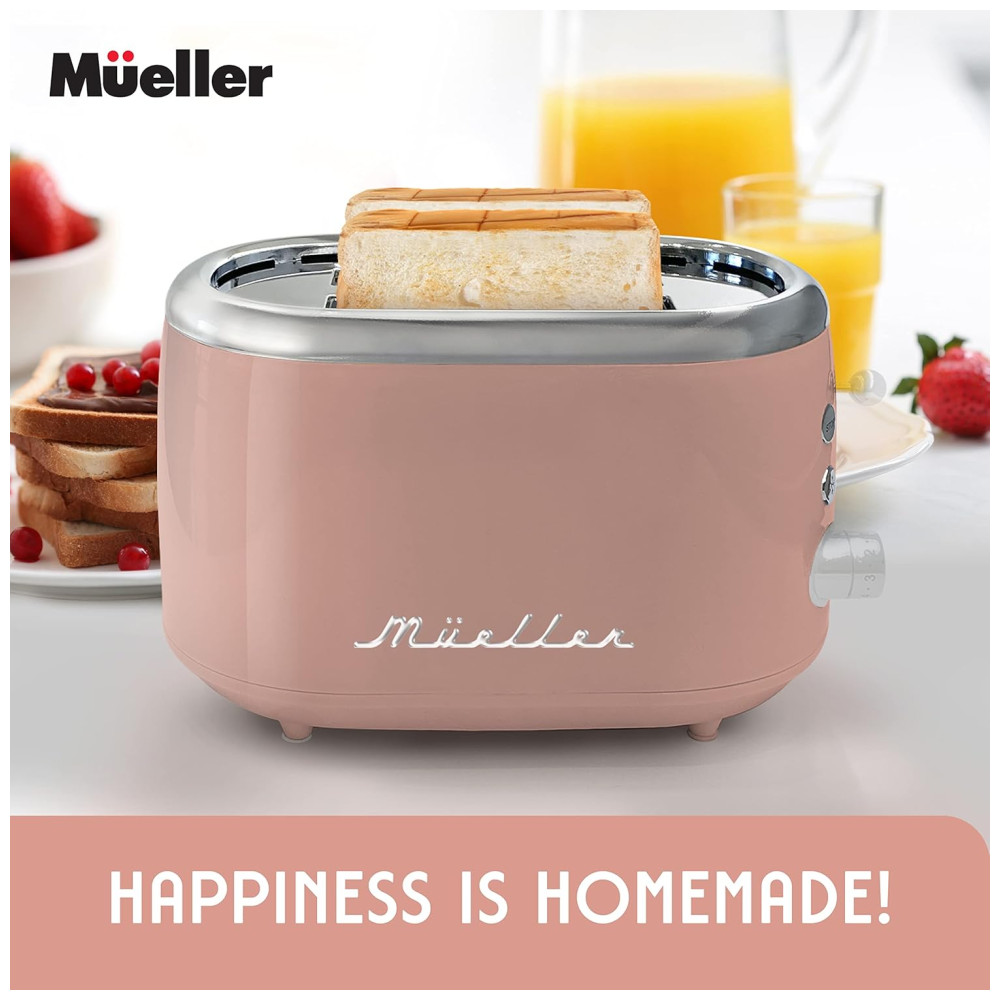 Torradeira Elétrica 2 Fatias com 7 Níveis de Tostagem e Função Descongelar 110V Mueller Retrô Rosa