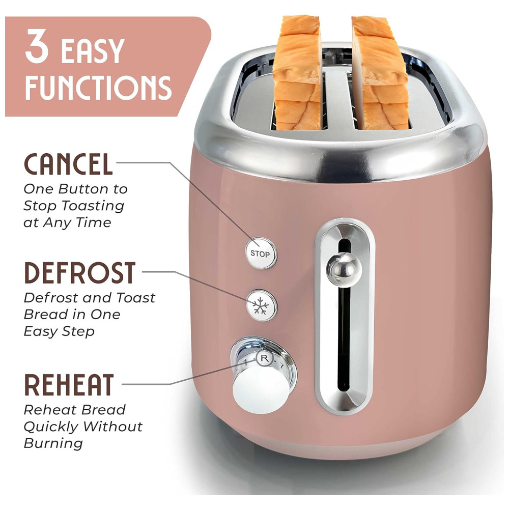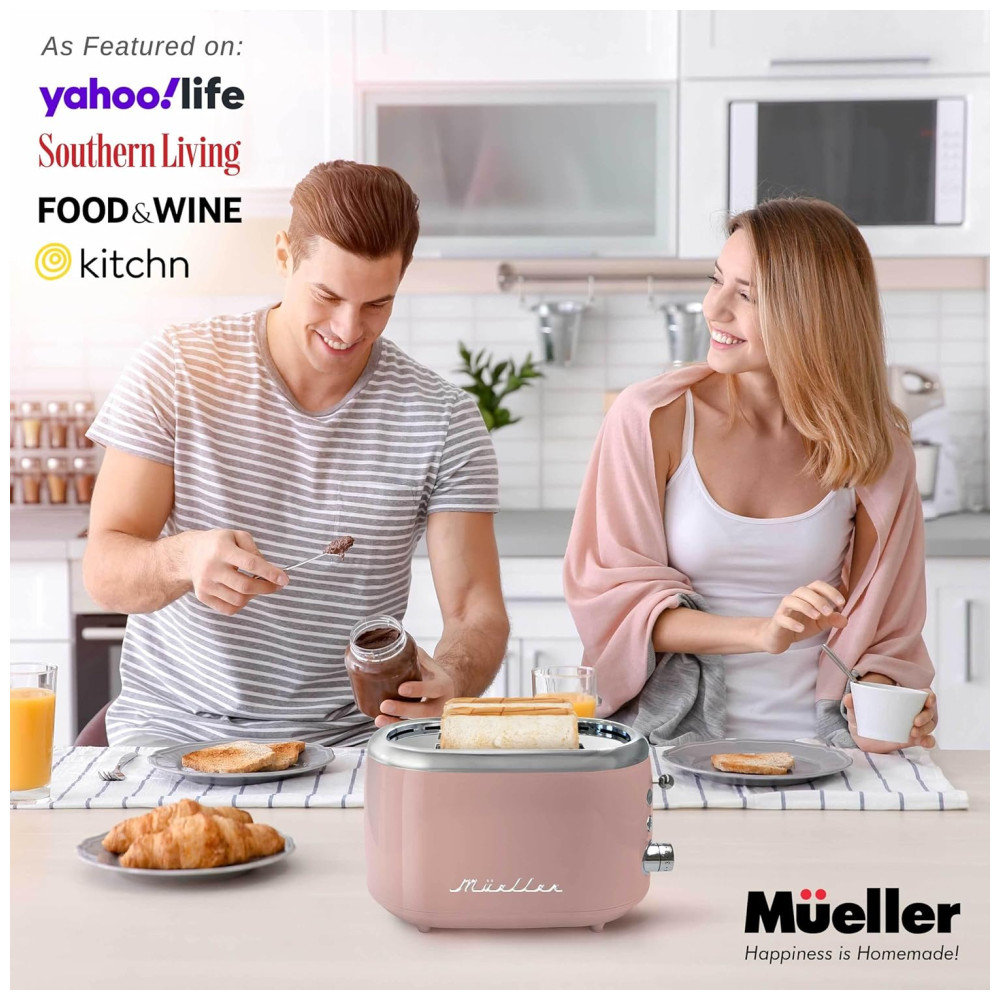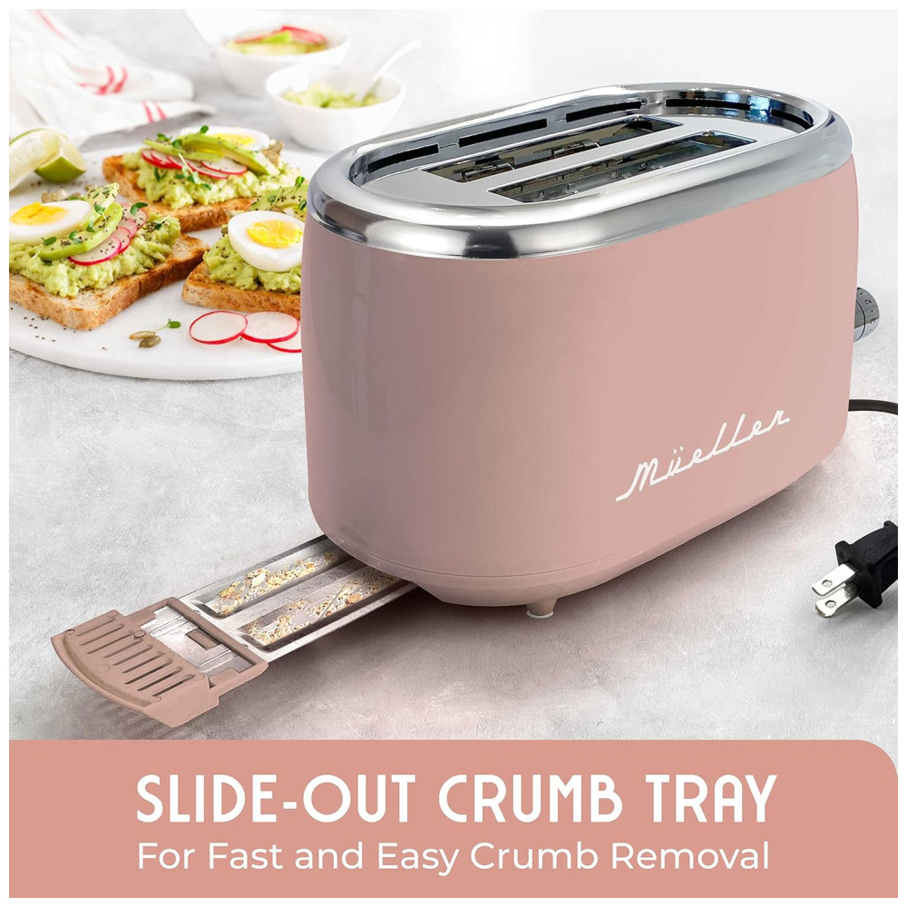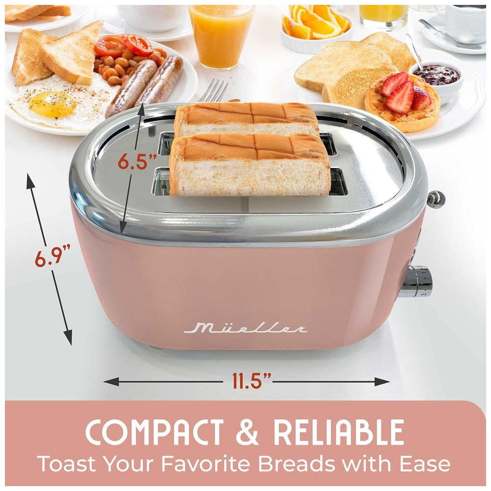 Torradeira Elétrica 2 Fatias com 7 Níveis de Tostagem e Função Descongelar 110V Mueller Retrô Rosa