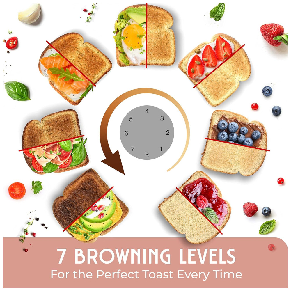 Comece bem a sua manhã Se você prefere torradas grossas ou muffins ingleses, nossa impressionante torradeira retrô lhe dará a quantidade certa de crocância sempre A charmosa torradeira possui slots autocentrantes e 7 configurações de cozimento para que você possa saborear sua torrada exatamente como gosta.