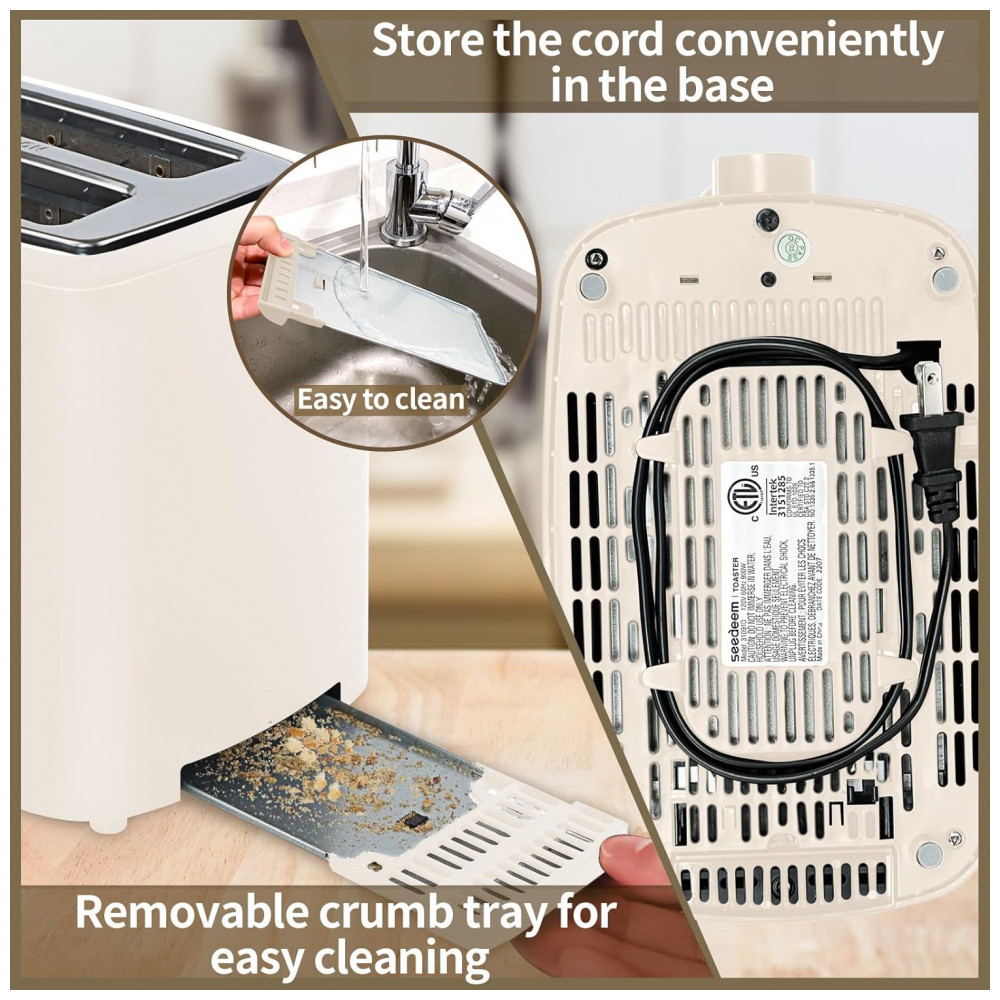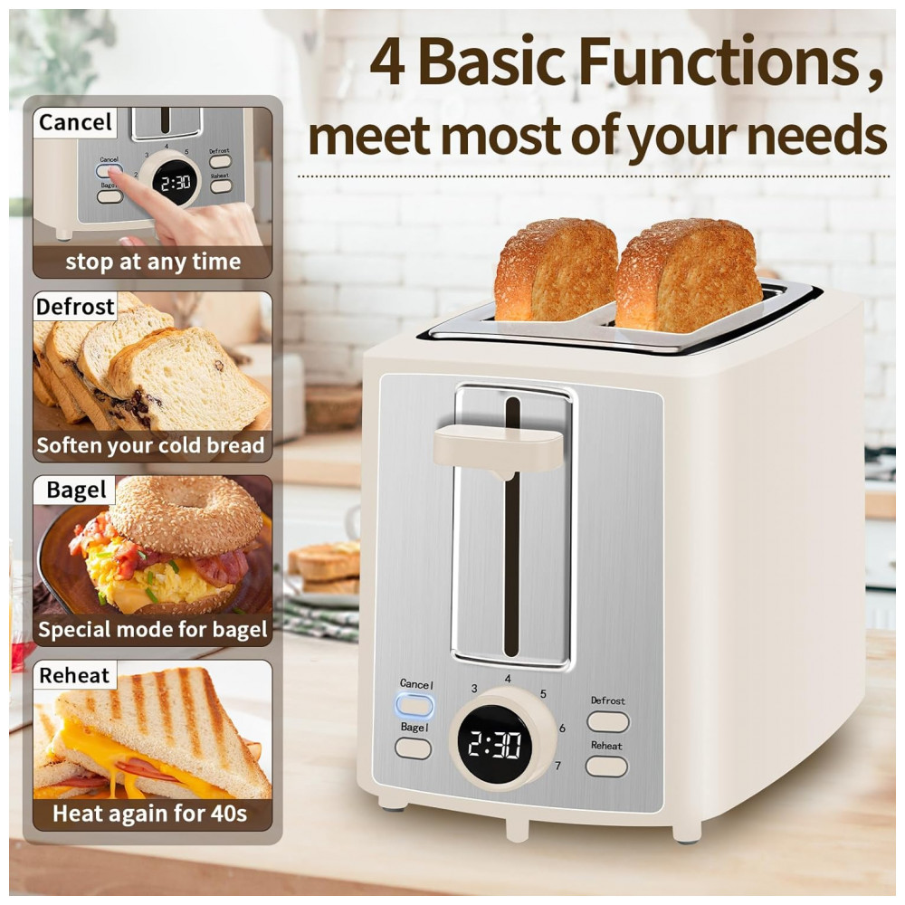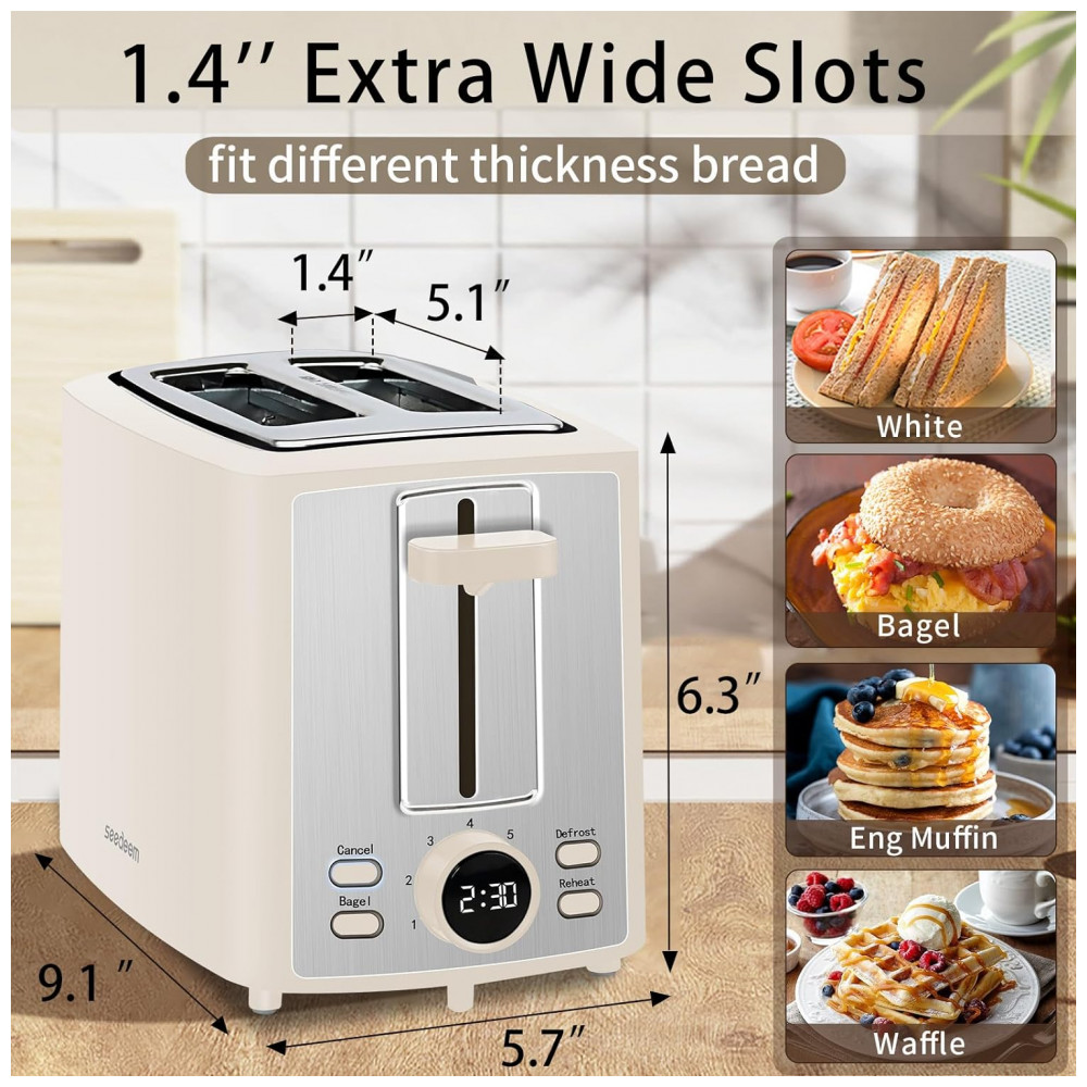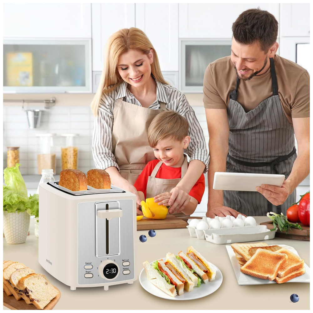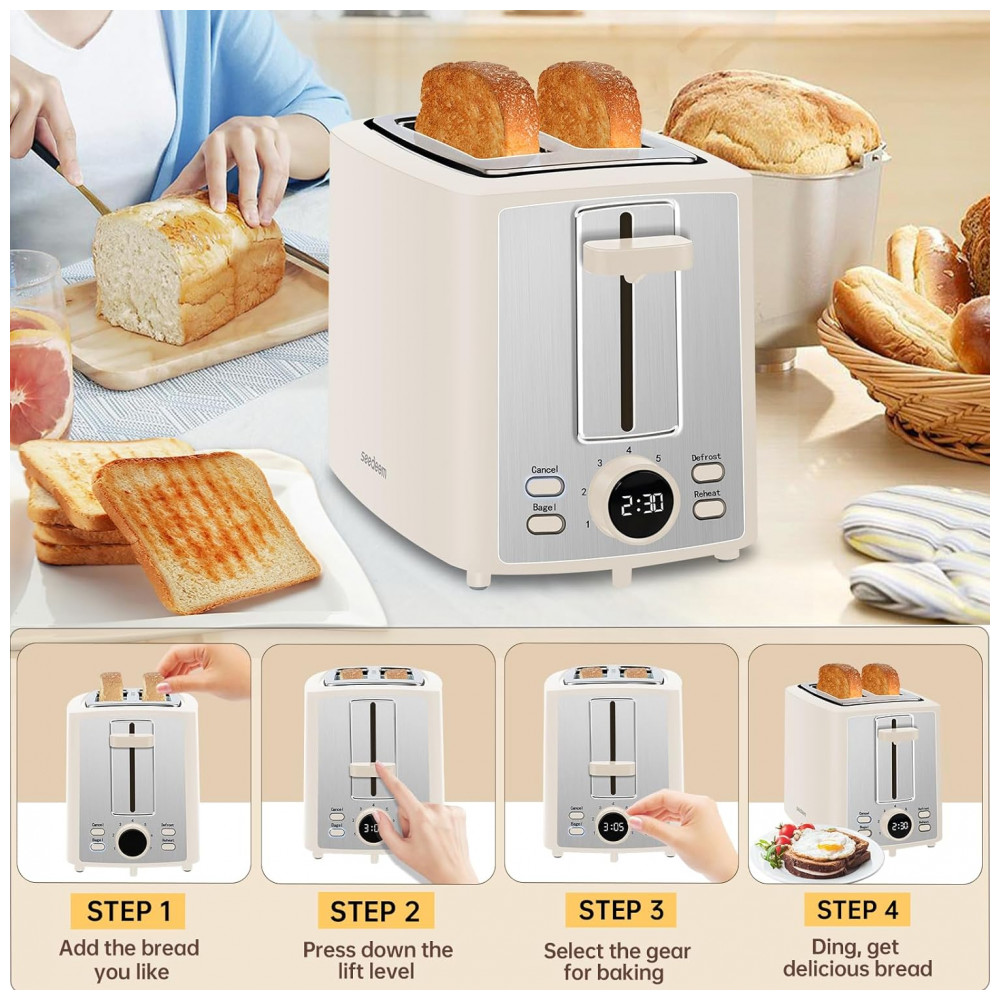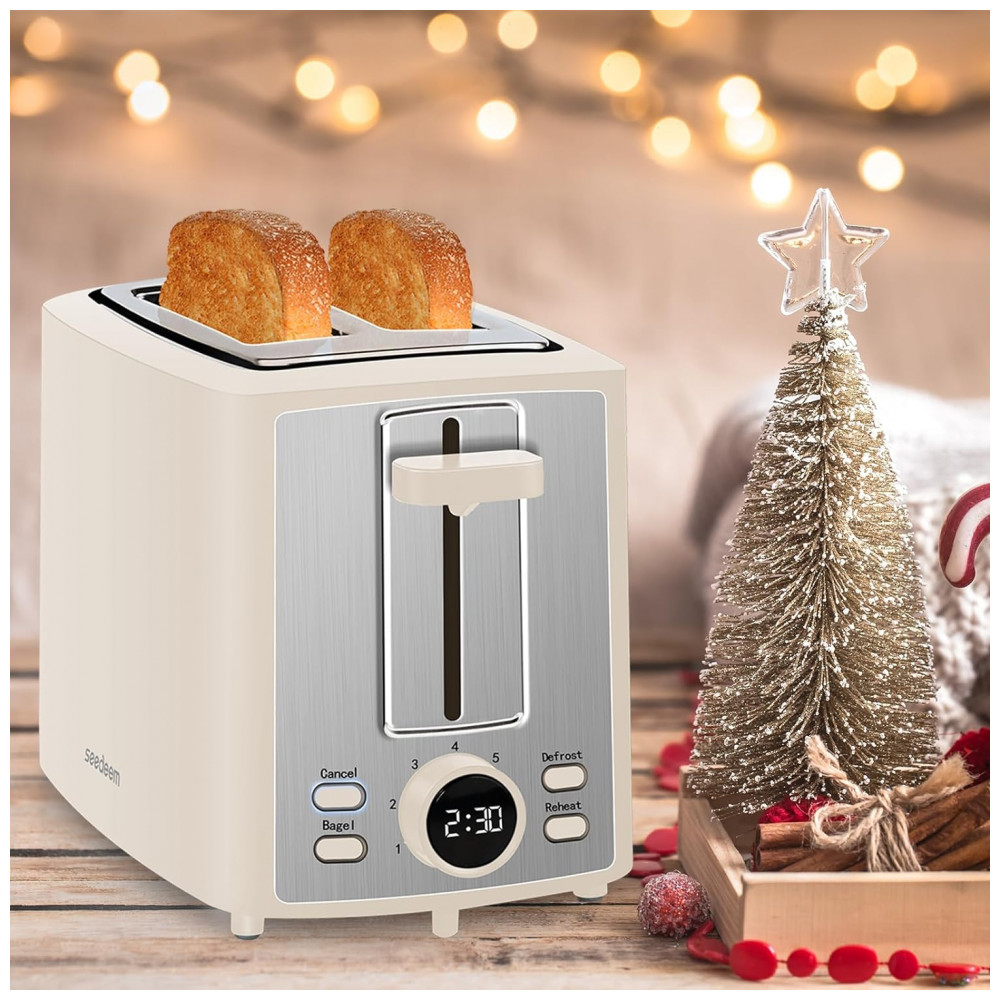 Torradeira Elétrica 2 Fatias com 7 Níveis de Tostagem e Visor LCD 110V 900W SEEDEEM Creme Branco
