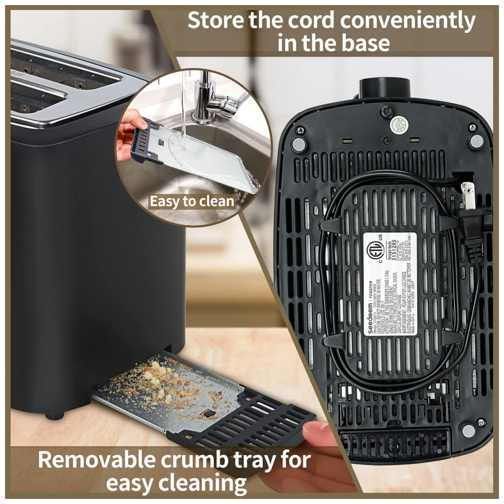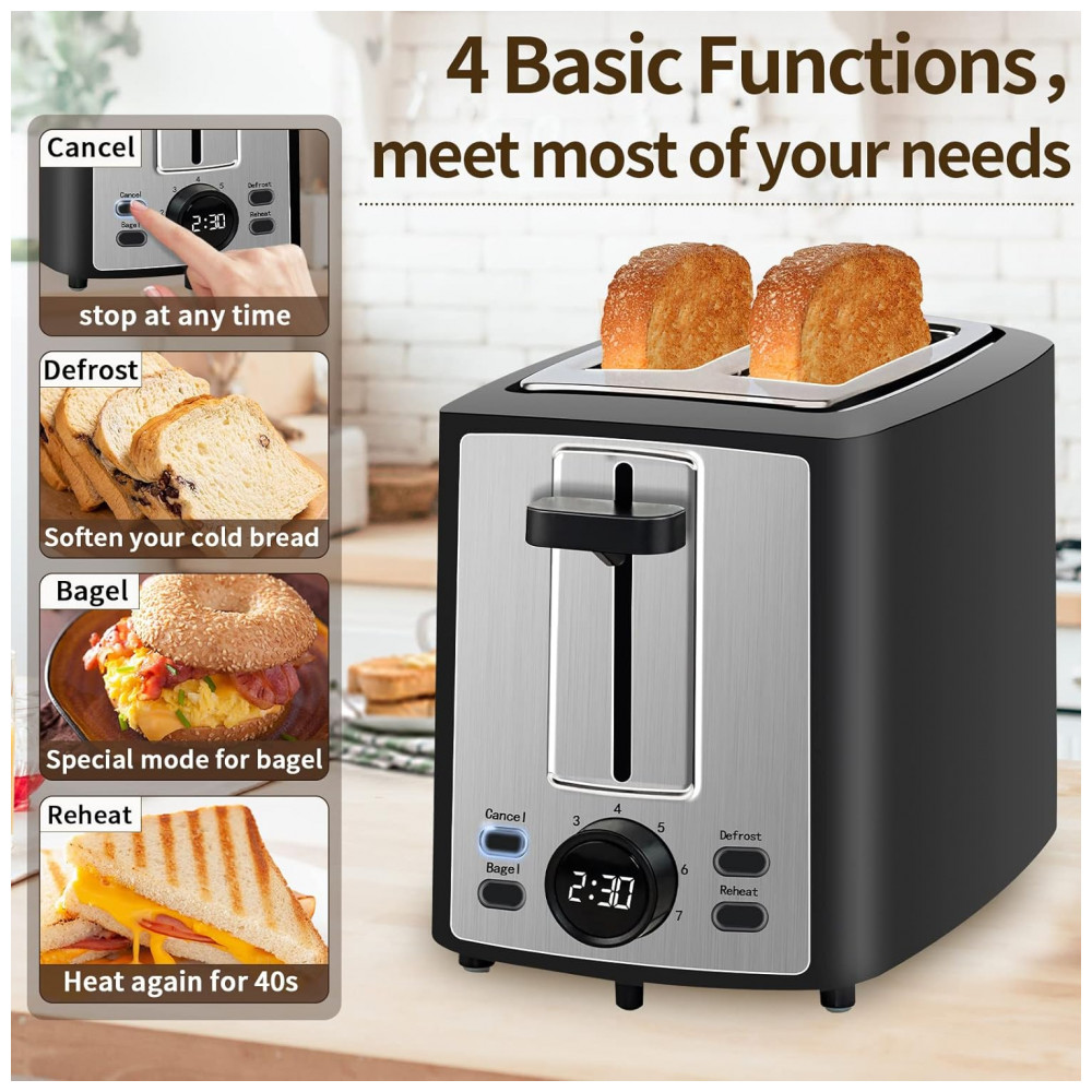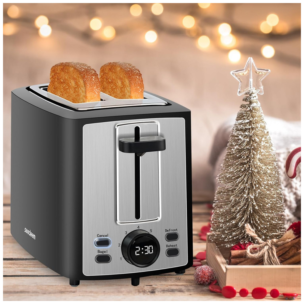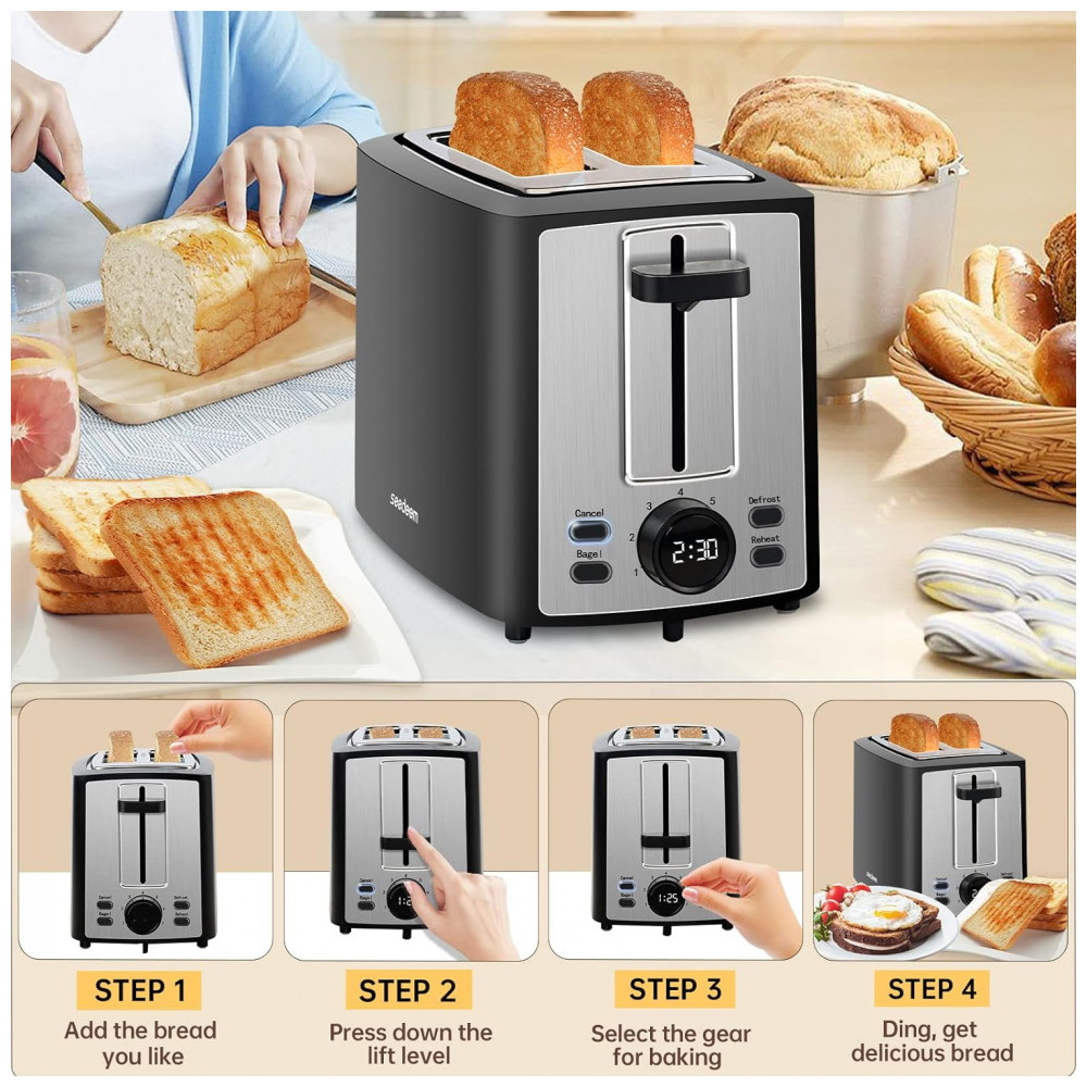 Torradeira Elétrica 2 Fatias com 7 Níveis de Tostagem e Visor LCD 110V 900W SEEDEEM Preta