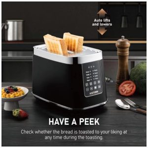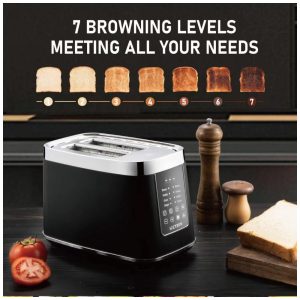 Torradeira Elétrica 2 Fatias com 7 Níveis de Tostagem em Aço Inoxidável e Painel Digital 110V 1400W KETIAN Preta