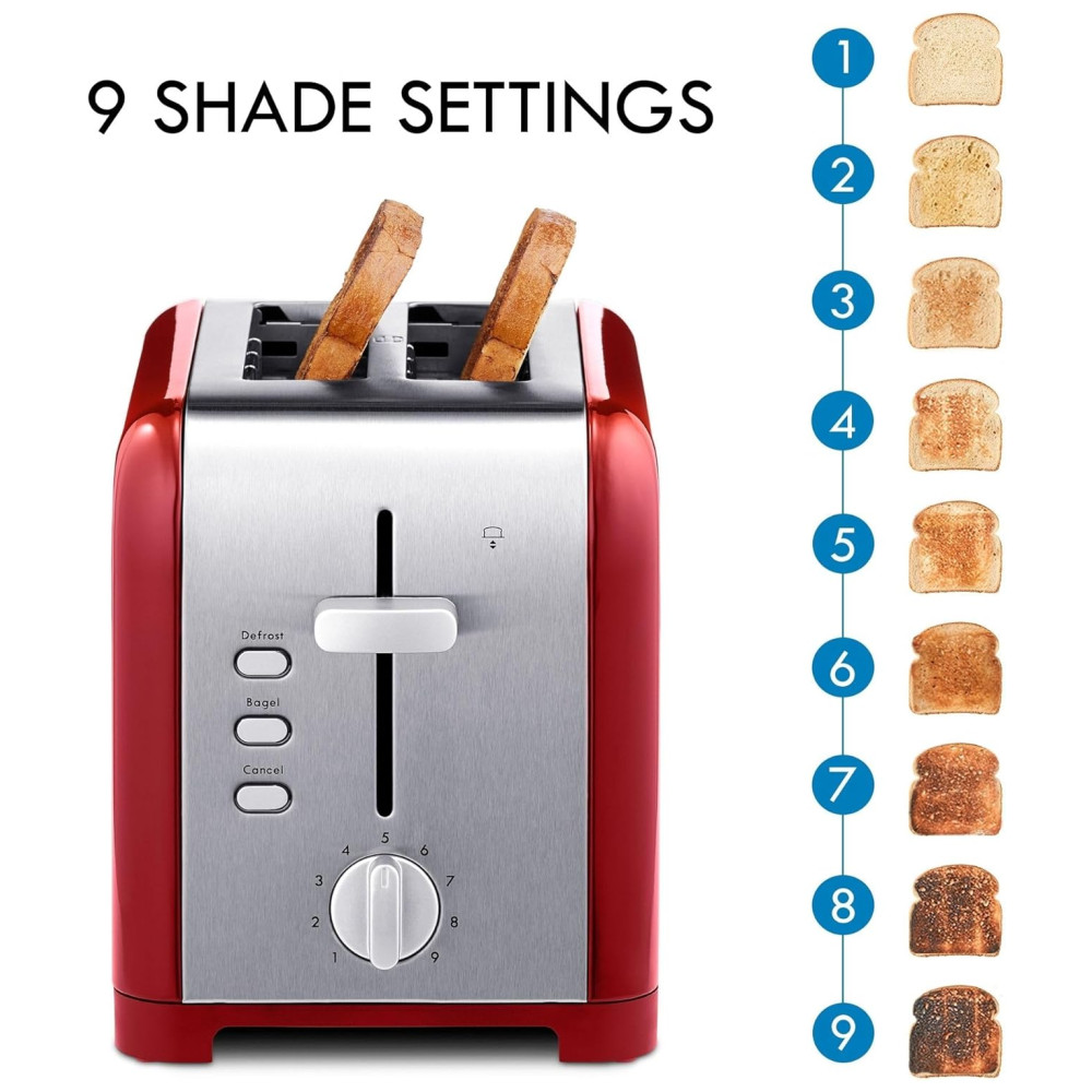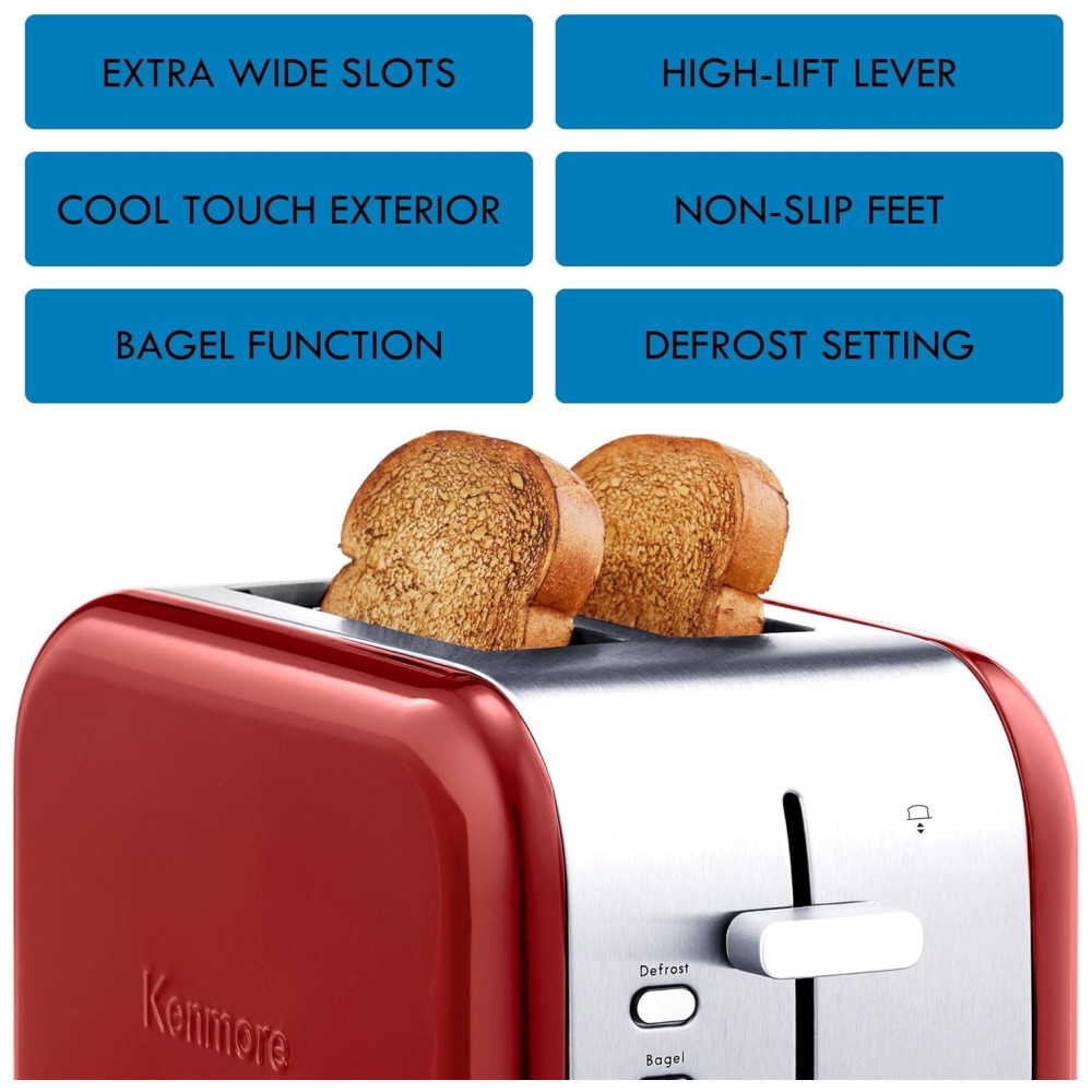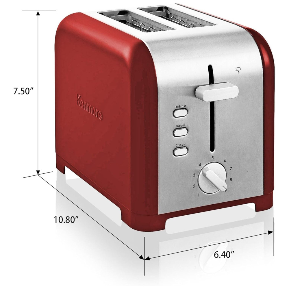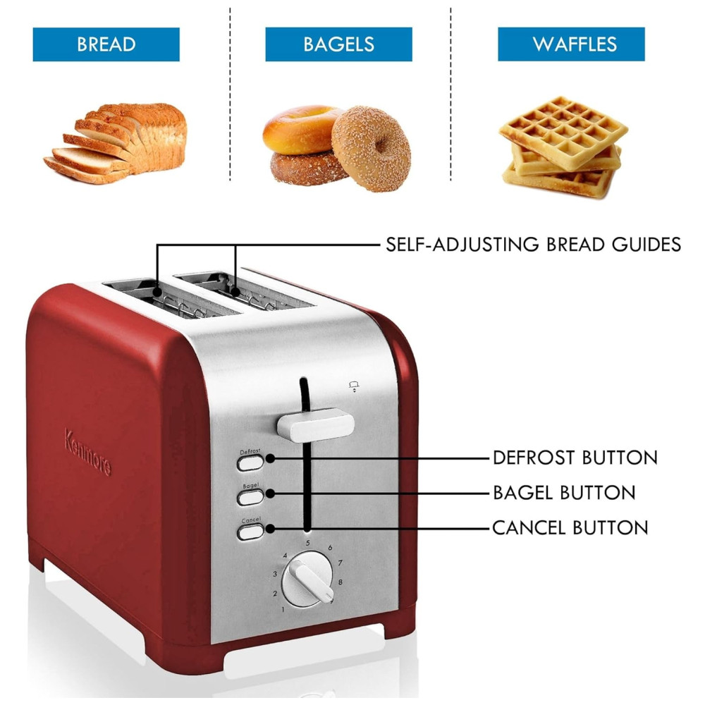 Torradeira Elétrica 2 Fatias com 9 Níveis de Tostagem Ajustáveis Aço Inox 110v KENMORE KKTS2SR AZ 2 Vermelho