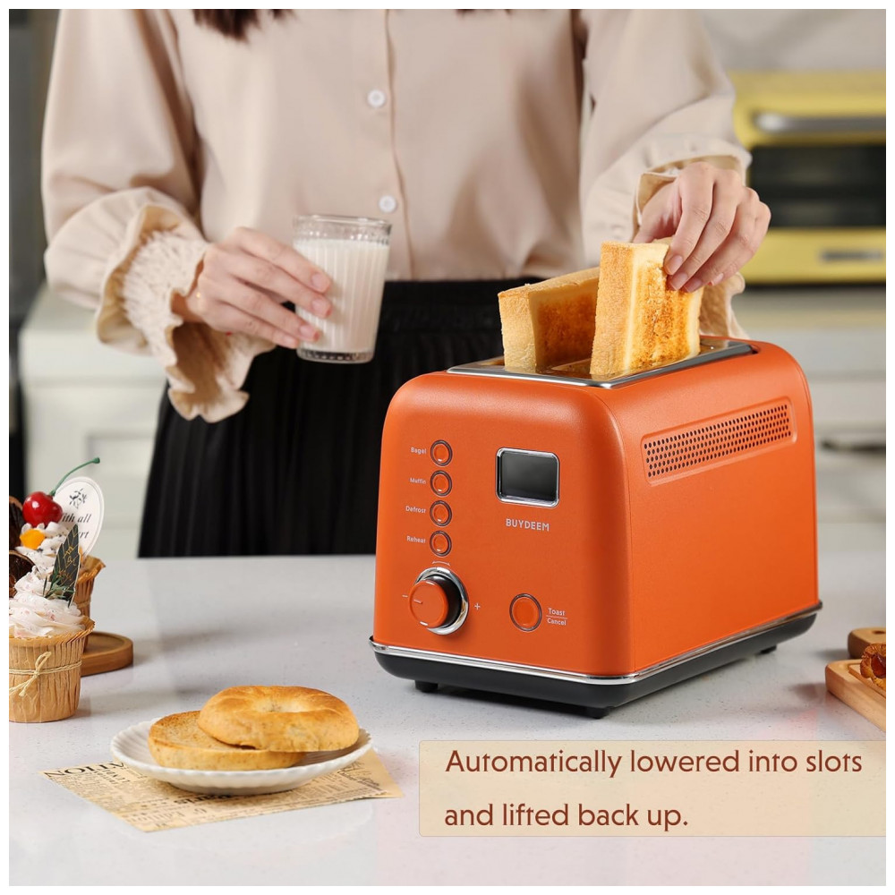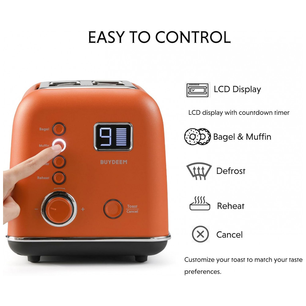 Torradeira Elétrica 2 Fatias com 9 Níveis e Temporizador LCD BUYDEEM DT730 110V 800W Laranja