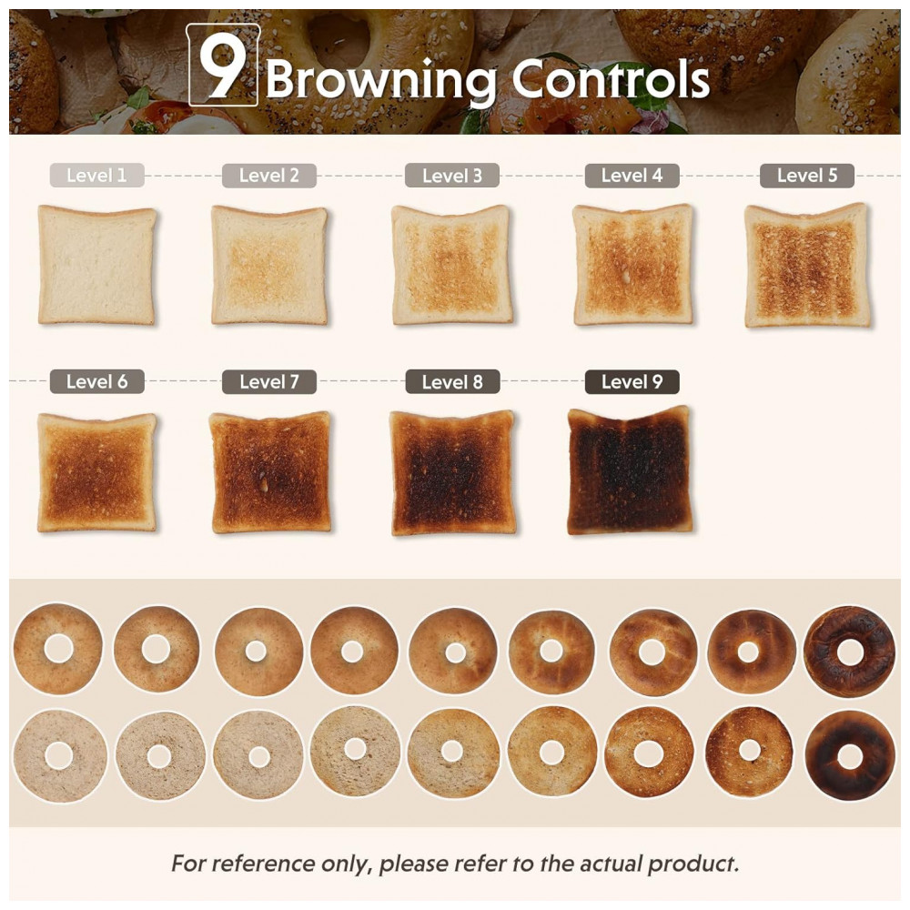 Especialista em bagel e muffin A verdadeira função de brindar bagel aquece os dois lados do bagel inicialmente, depois apenas brinda o lado de corte para uma textura perfeitamente crocante todas as vezes. As funções de reaquecimento e degelo economizam tempo aquecendo rapidamente itens tostados anteriormente e descongelando pães ou doces congelados, tornando o café da manhã sem complicações e delicioso.