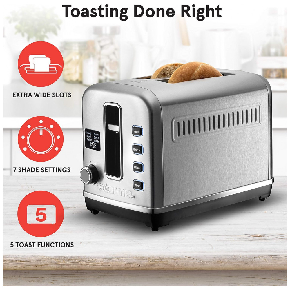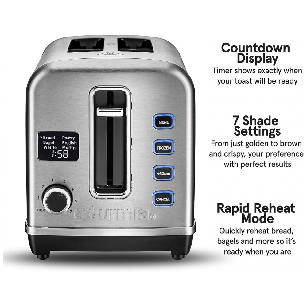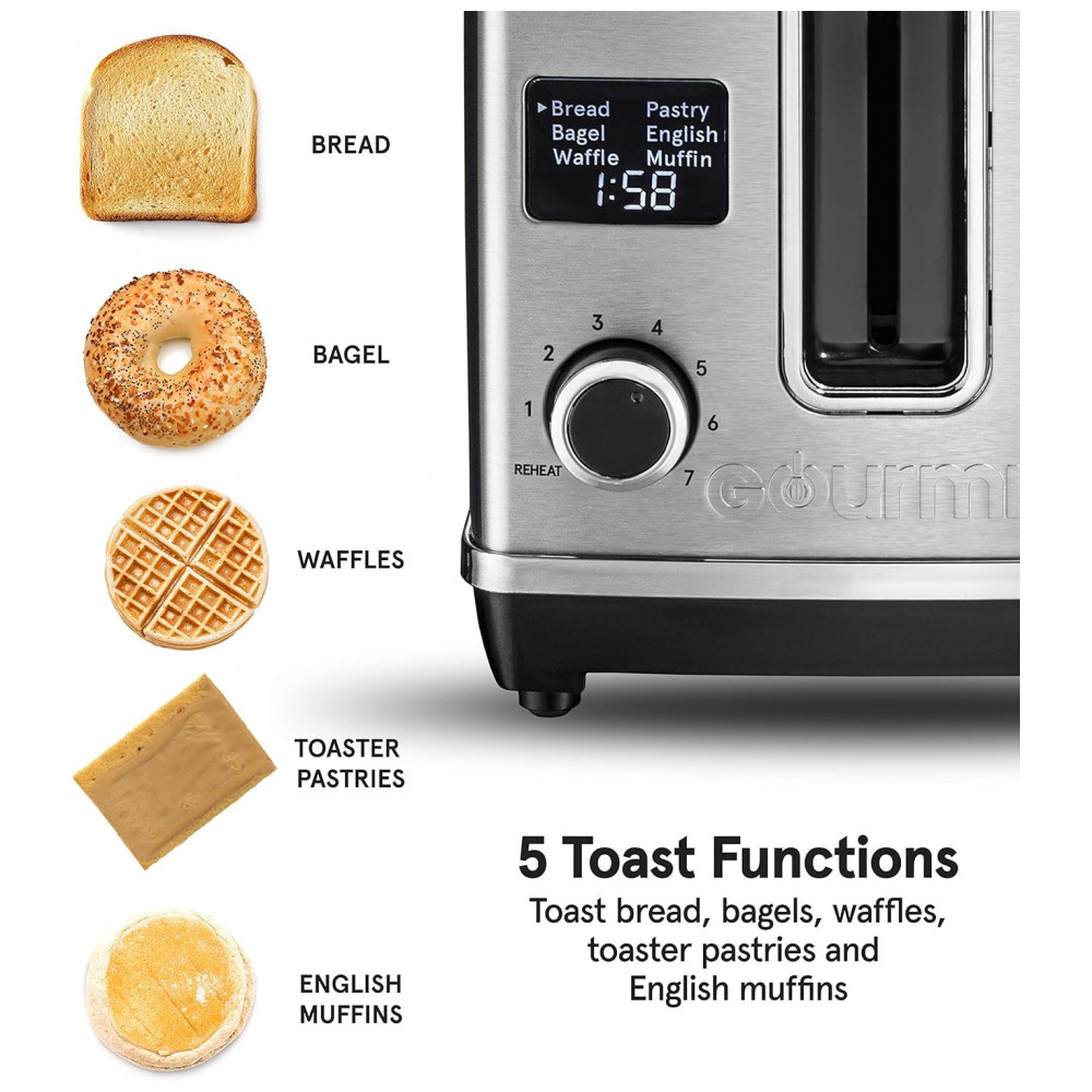 Torradeira Elétrica 4 Fatias 6 Níveis de Tostagem em Aço Inoxidável com Visor LED 110V 800W Gourmia GDT2650 Prata