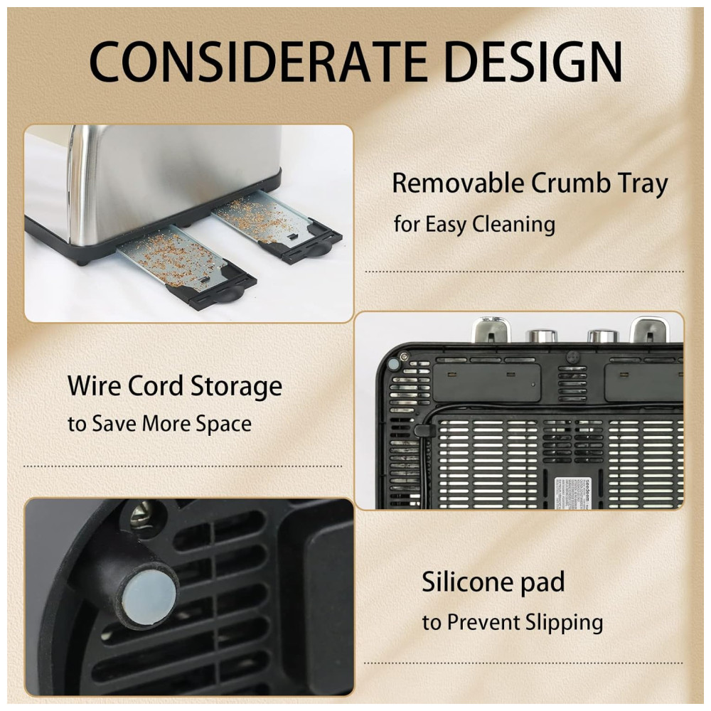 Design atencioso o invólucro de aço inoxidável o torna forte e elegante. Alavanca de elevação flexível para queda suave e pop up automático. A bandeja de migalhas removível ajuda você a coletar e despejar as migalhas que caem