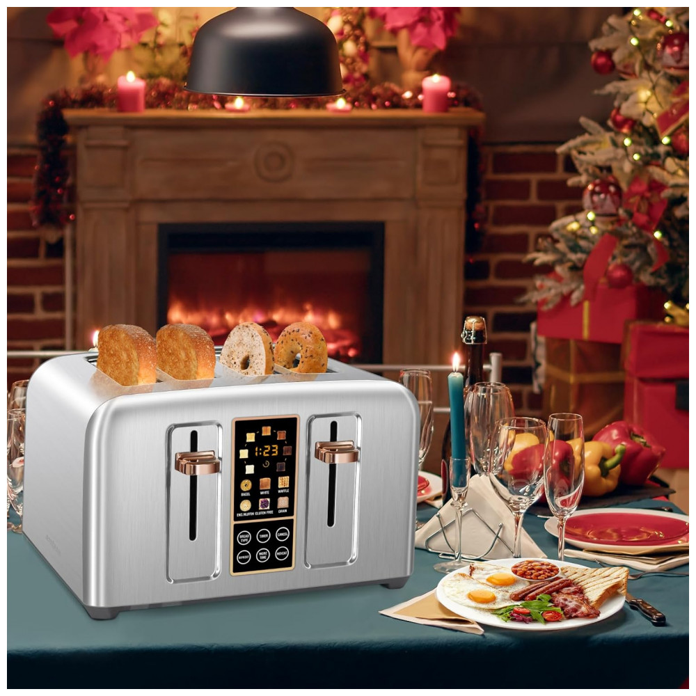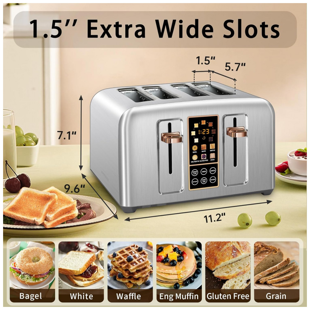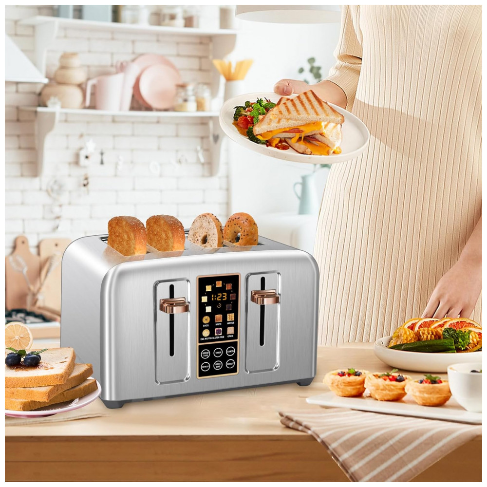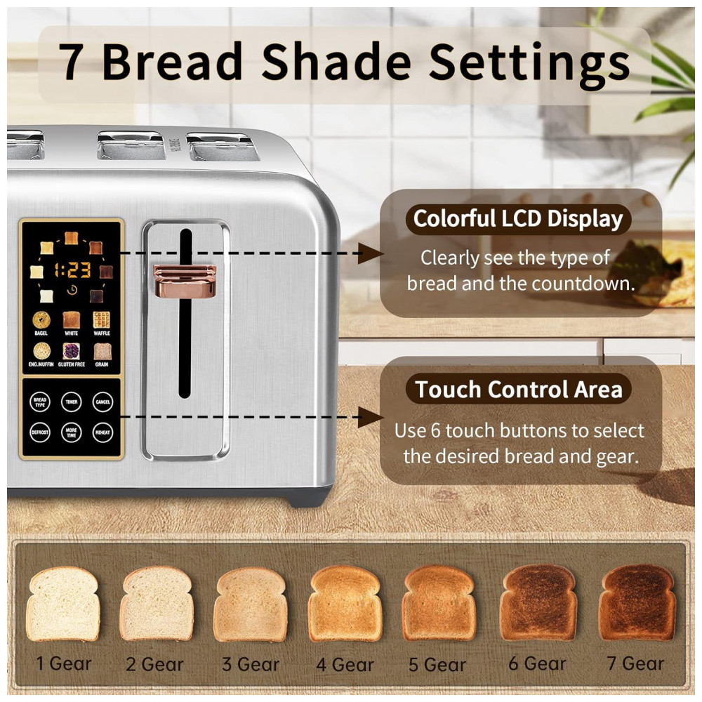 Torradeira Elétrica 4 Fatias 7 Níveis de Tostagem em Aço Inoxidável e Tela LCD 110V 1800W SEEDEEM Prata