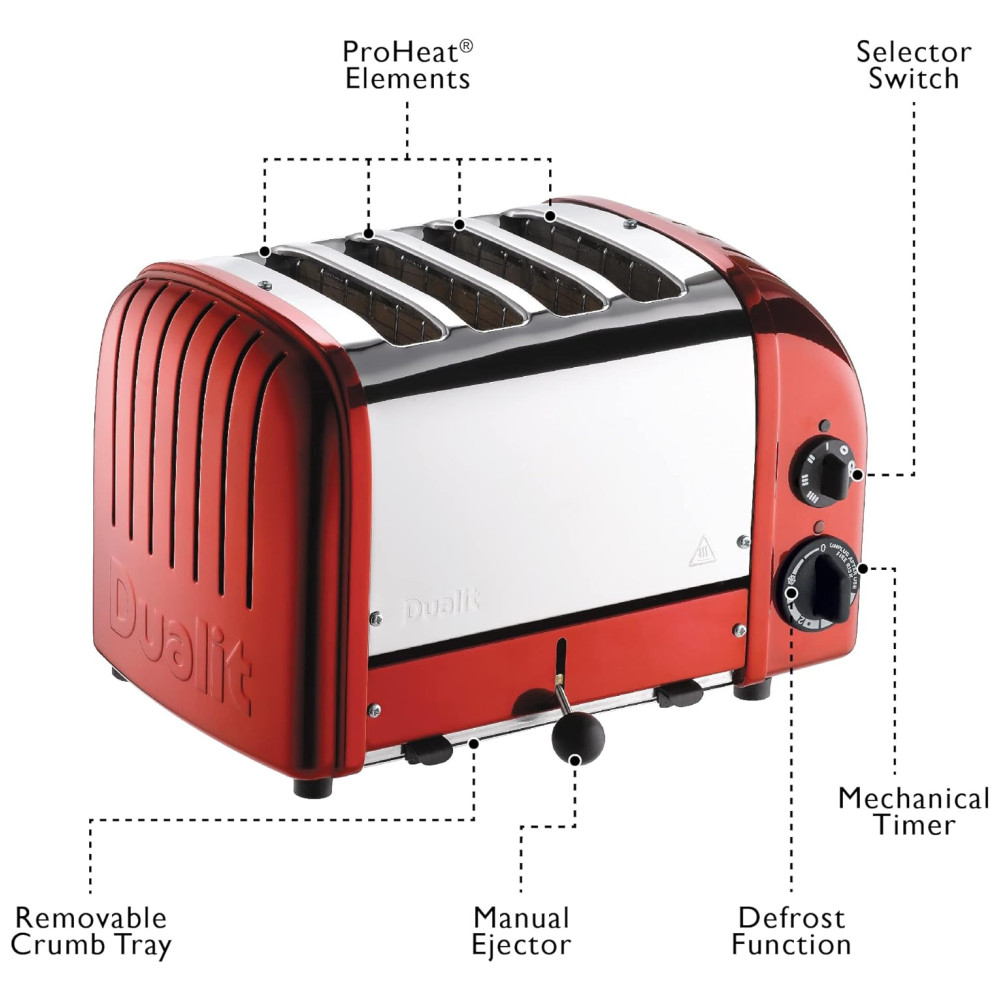 Torradeira Elétrica 4 Fatias com 3 Níveis de Tostagem 110v DUALIT 47171 Vermelho