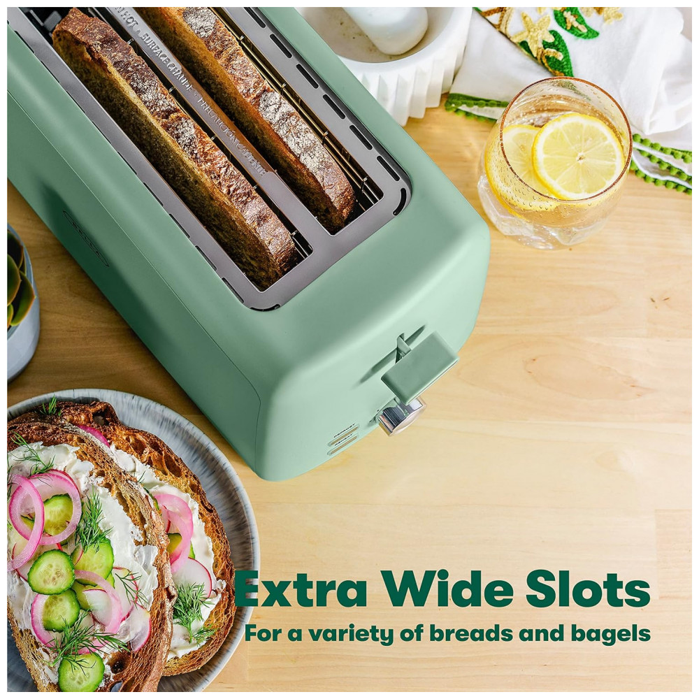 Este forno pequeno e compacto possui dois slots extra largos e longos, perfeitos para fatiar seu tipo de pão favorito de pão de sanduíche comum a torradas do Texas, muffins ingleses e muito mais. São sete opções de tonalizantes, para que você possa deixar sua torrada do jeito que você gosta. A alavanca de elevação facilita a remoção da torrada chega de dedos queimados E o botão de controle preciso com resposta tátil significa que você pode sempre obter sua torrada perfeita.