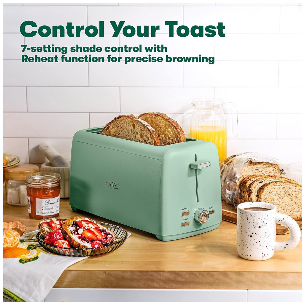 Torradeira Elétrica 4 Fatias com 7 Níveis de Tostagem 110V 1400W BELLA Verde
