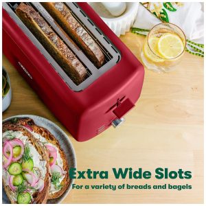 Este forno pequeno e compacto possui dois slots extra largos e longos, perfeitos para fatiar seu tipo de pão favorito de pão de sanduíche comum a torradas do Texas, muffins ingleses e muito mais. São sete opções de tonalizantes, para que você possa deixar sua torrada do jeito que você gosta. A alavanca de elevação facilita a remoção da torrada chega de dedos queimados E o botão de controle preciso com resposta tátil significa que você pode sempre obter sua torrada perfeita.
