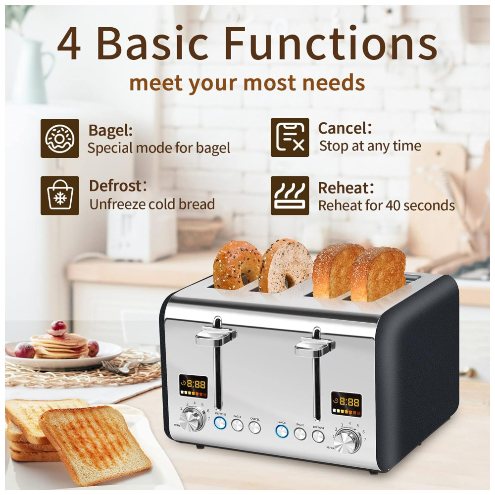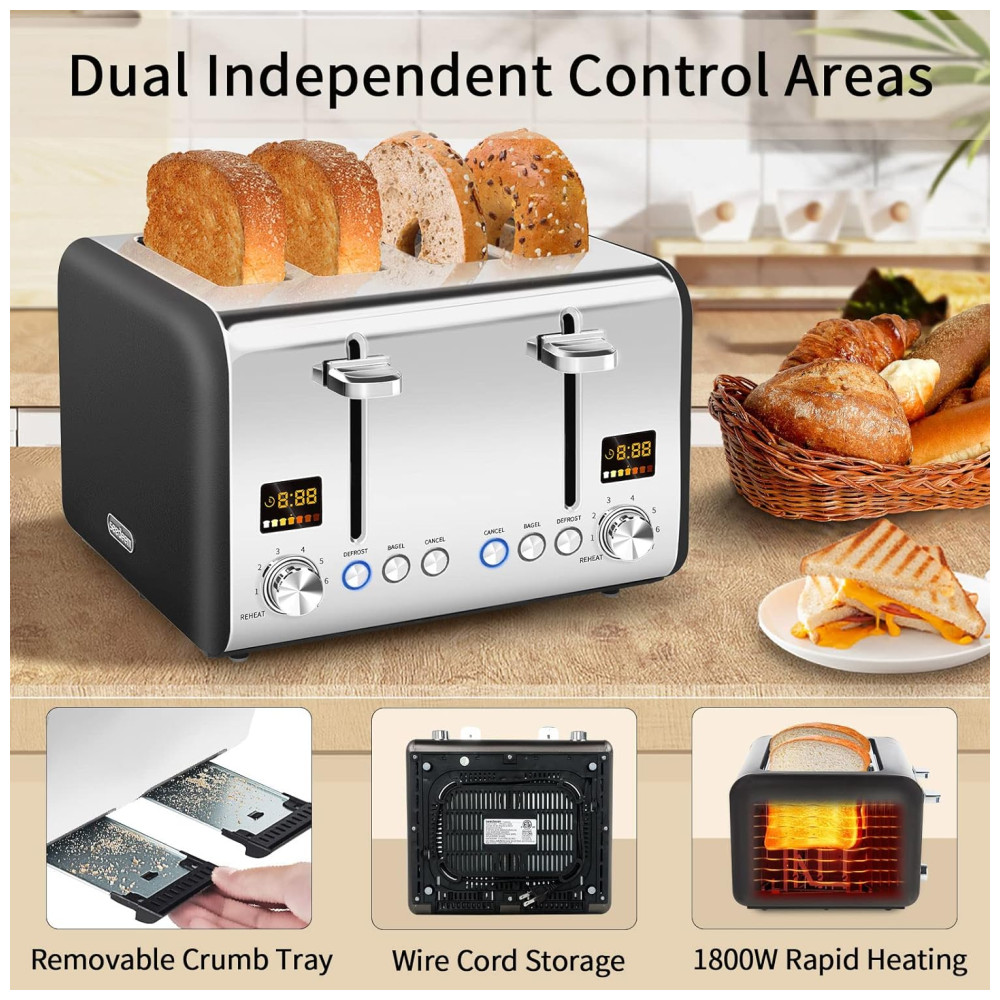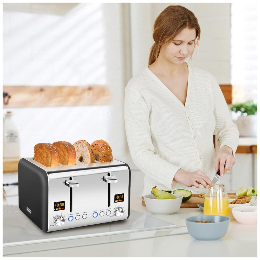Torradeira Elétrica 4 Fatias com 7 Níveis de Tostagem 1800W 110v SEEDEEM Prateado
