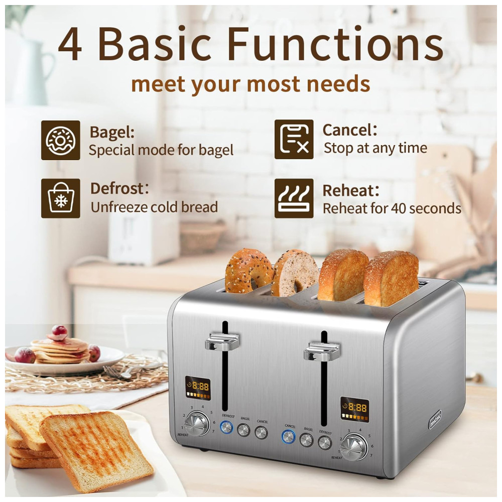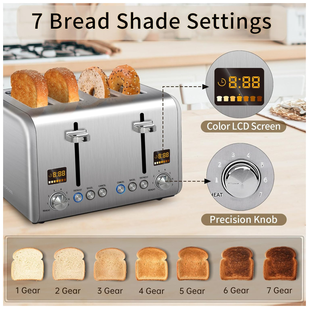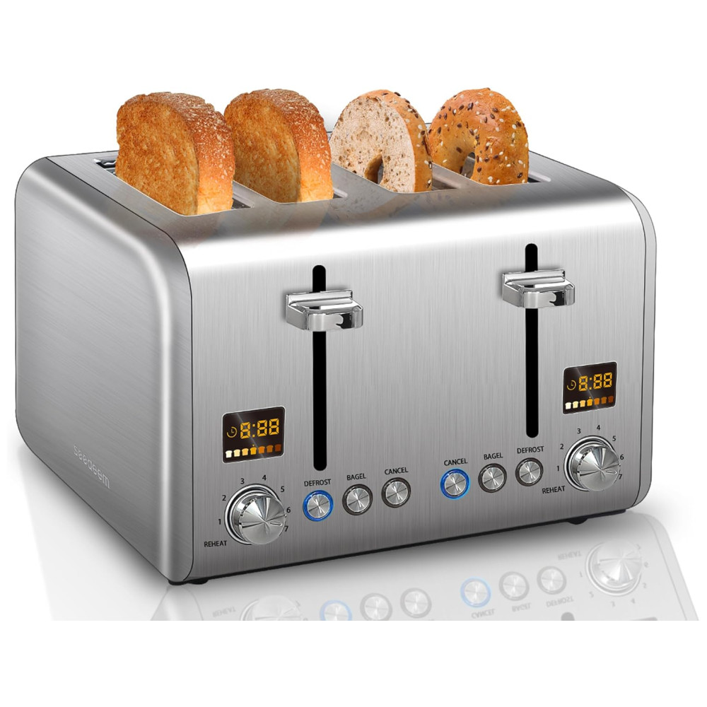 Torradeira Elétrica 4 Fatias com 7 Níveis de Tostagem 1800W 110v SEEDEEM Prateado