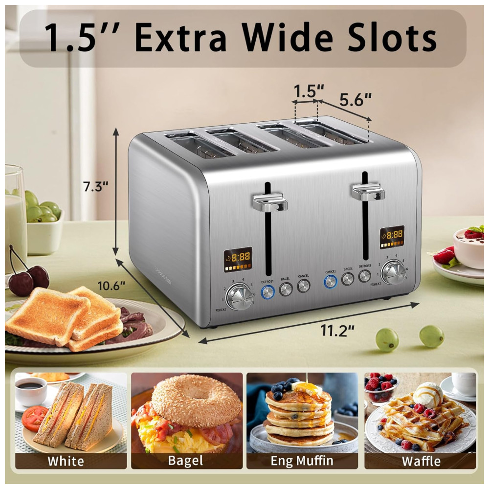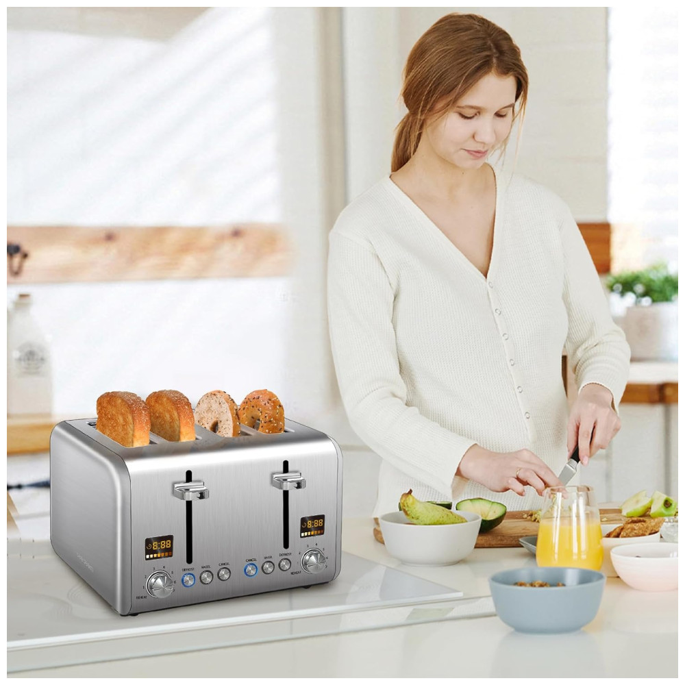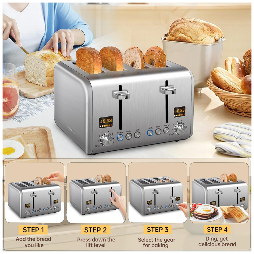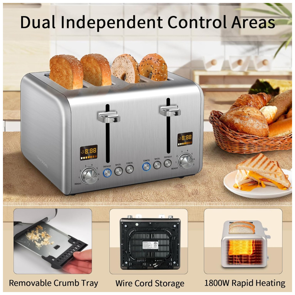 Torradeira Elétrica 4 Fatias com 7 Níveis de Tostagem 1800W 110v SEEDEEM Prateado