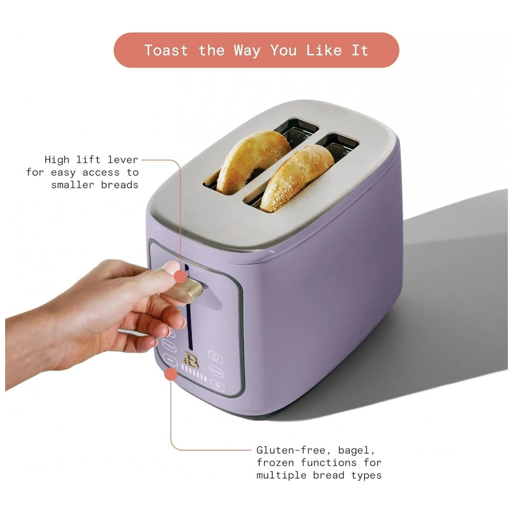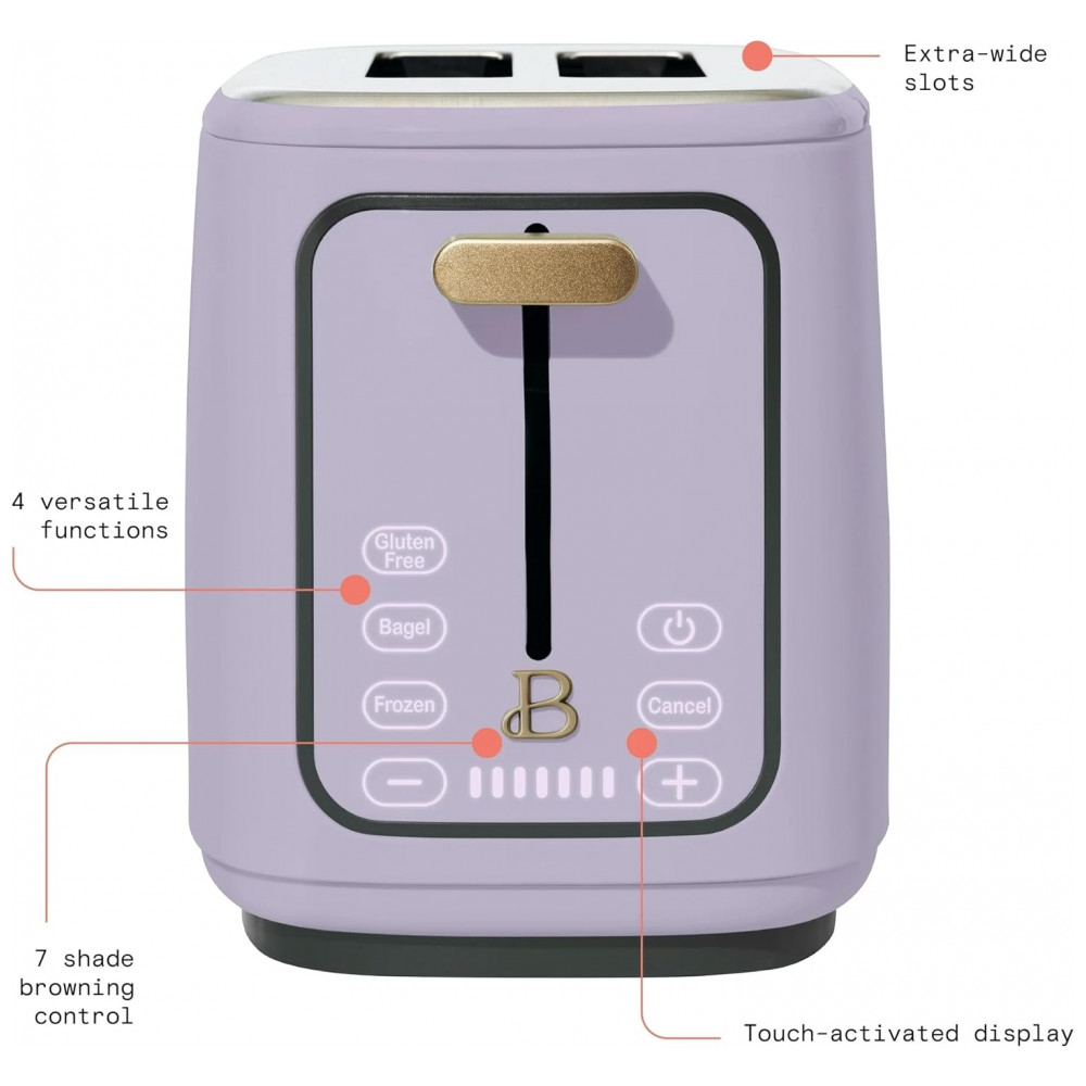Torradeira elétrica Beautiful 2 fatias lavanda com display digital touch ranhuras largas 7 níveis de tostagem bandeja de migalhas 900W 110V