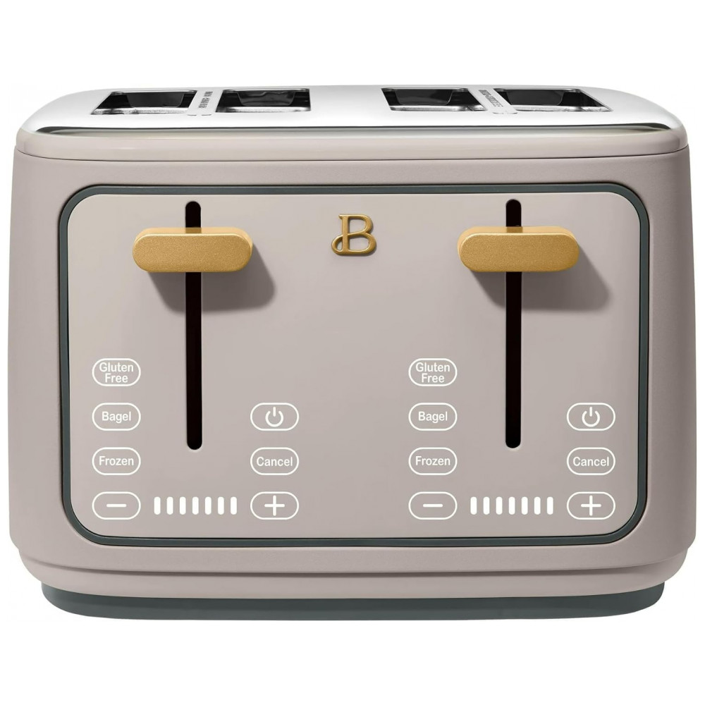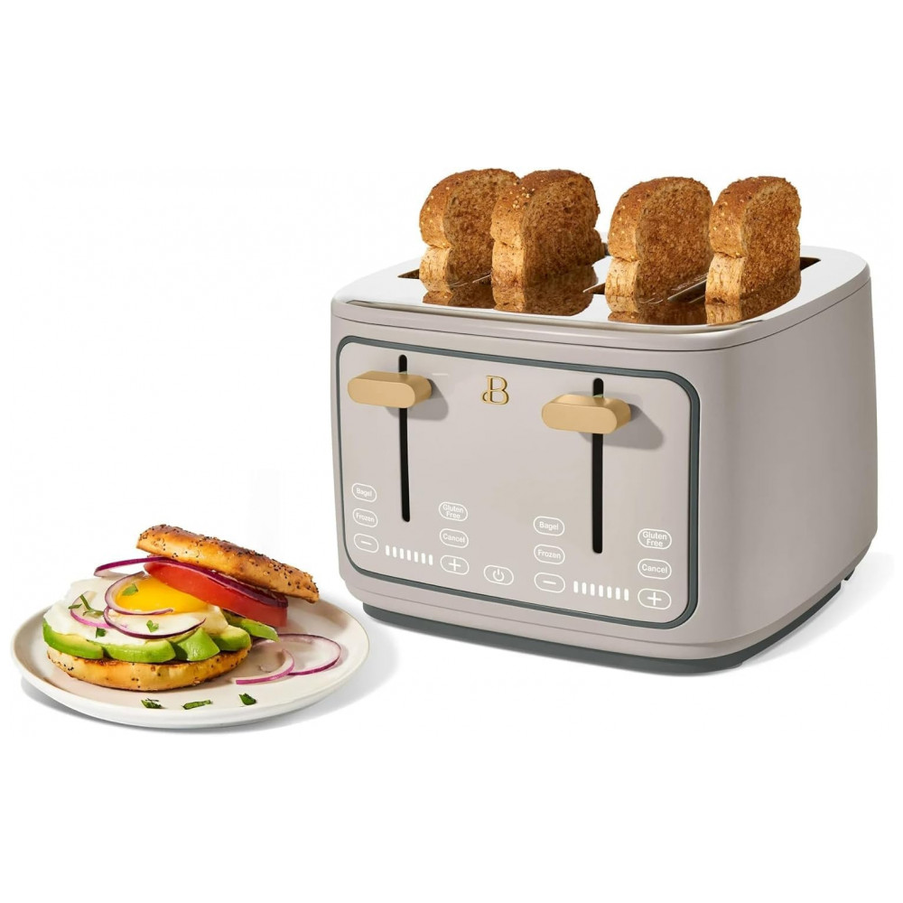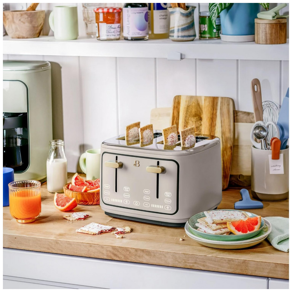 Torradeira elétrica Beautiful 4 fatias bege com display digital touch ranhuras largas autoajustáveis controle de tostagem 1800W 110V