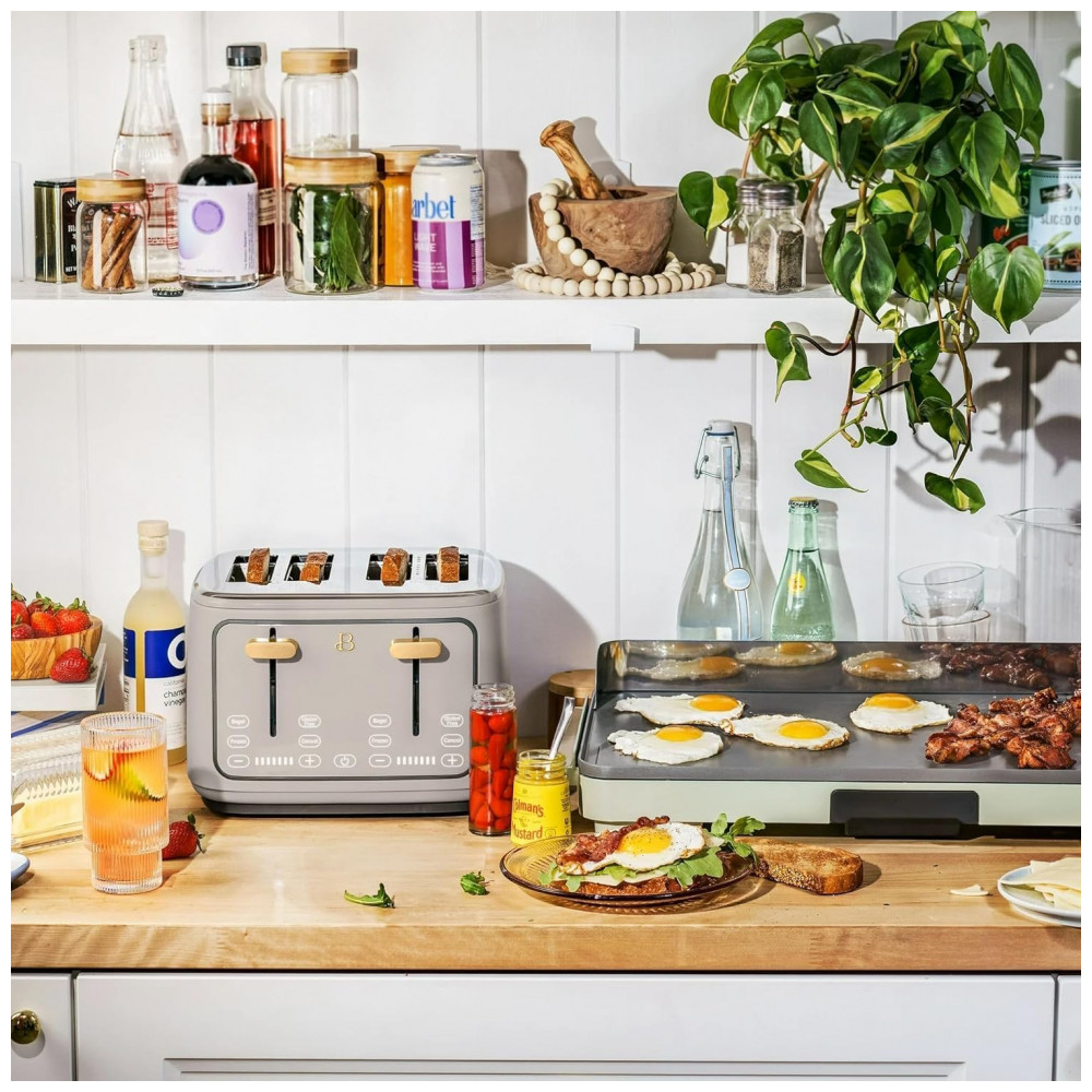 Torradeira elétrica Beautiful para 4 fatias com ranhuras extra largas autoajustáveis, desenvolvida para aquecer pães fatiados, pães artesanais e bagels com ajuste automático da espessura. O sistema de aquecimento de 1800W oferece distribuição uniforme de calor, com sete níveis de tostagem e funções específicas para descongelar, aquecer e ajustar tostagem para diferentes tipos de pão.