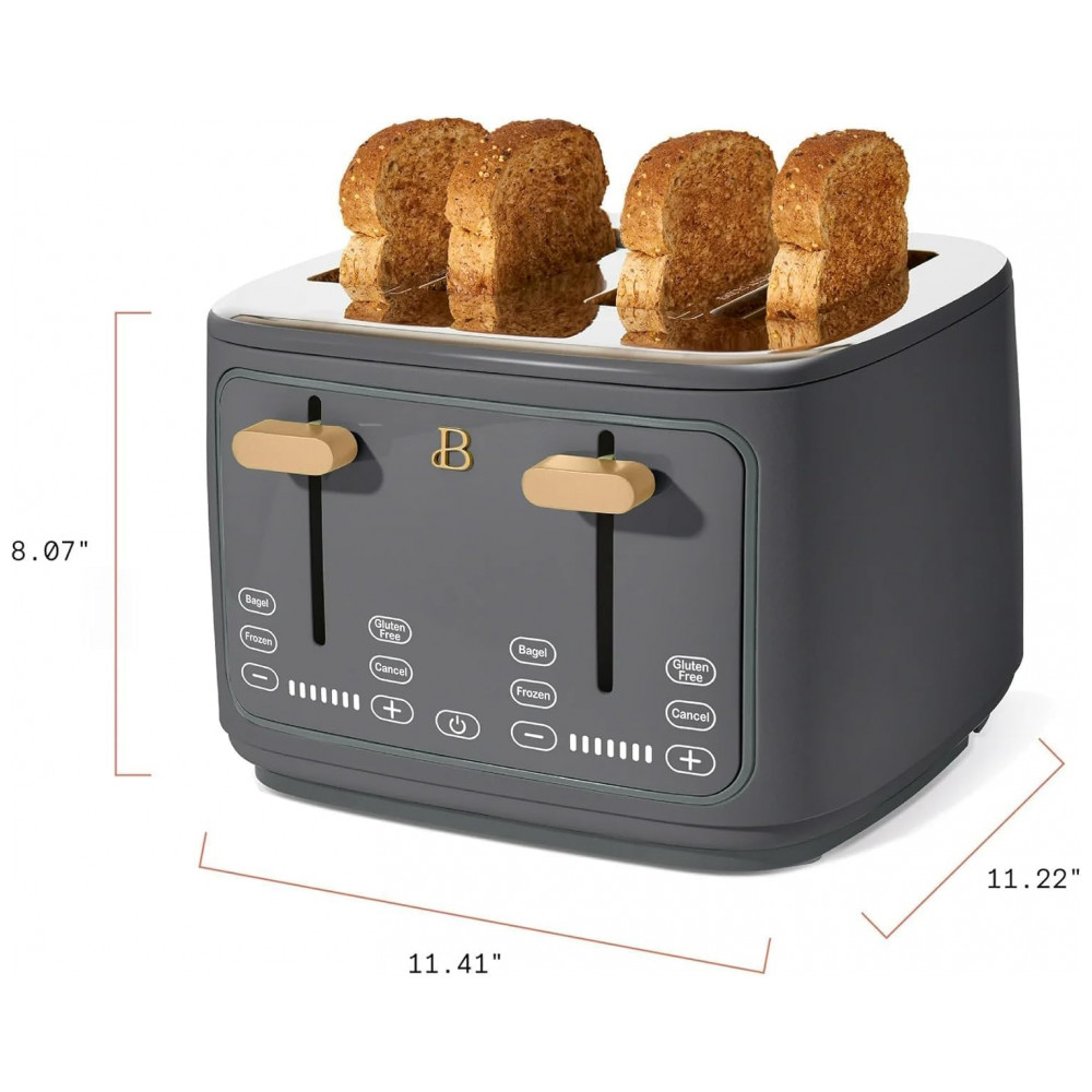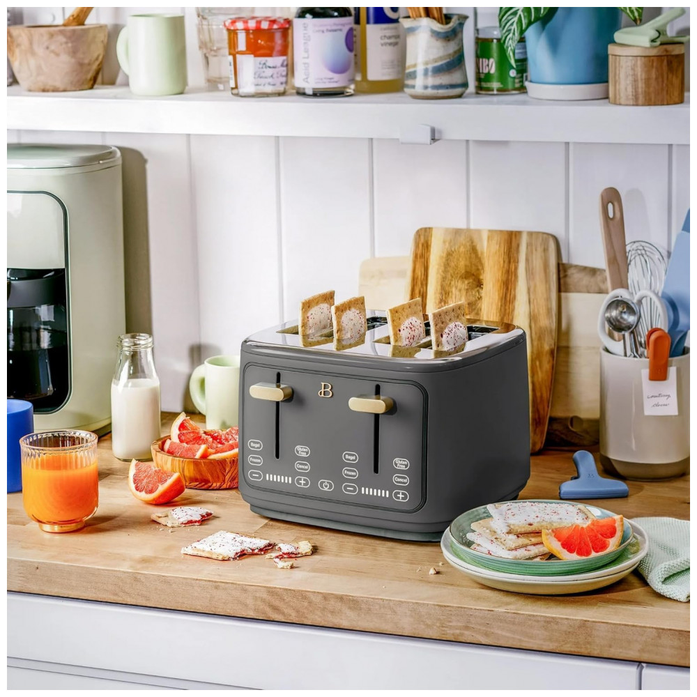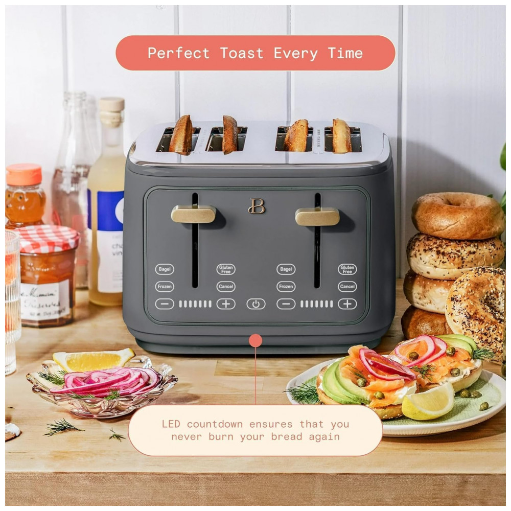 Torradeira elétrica Beautiful 4 fatias cinza com display digital touch ranhuras largas autoajustáveis controle de tostagem 1800W 110V