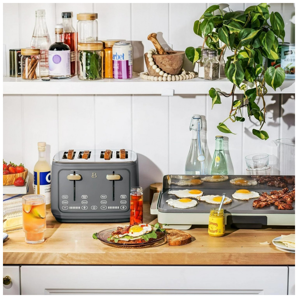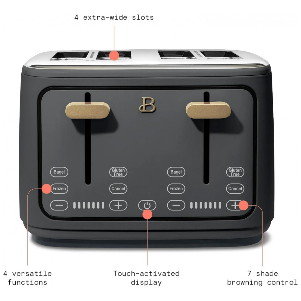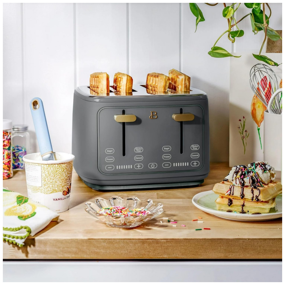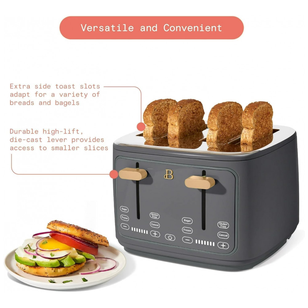 Torradeira elétrica Beautiful 4 fatias cinza com display digital touch ranhuras largas autoajustáveis controle de tostagem 1800W 110V