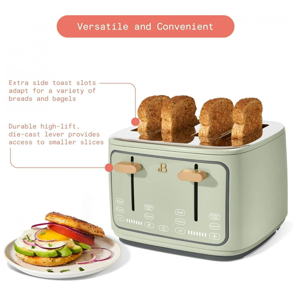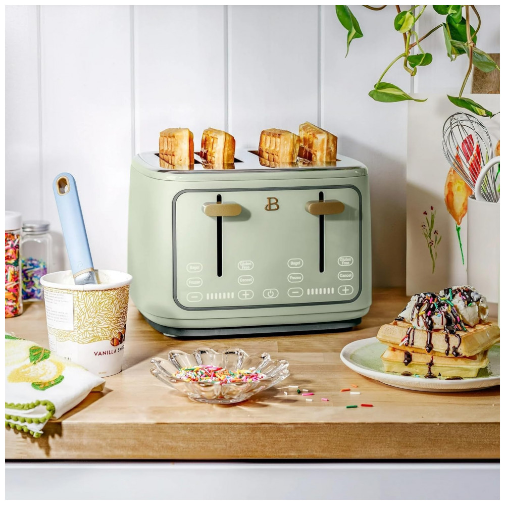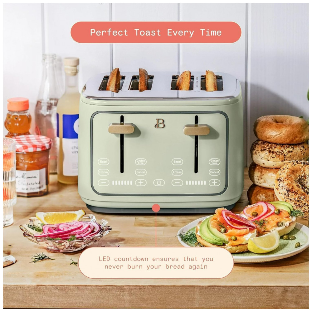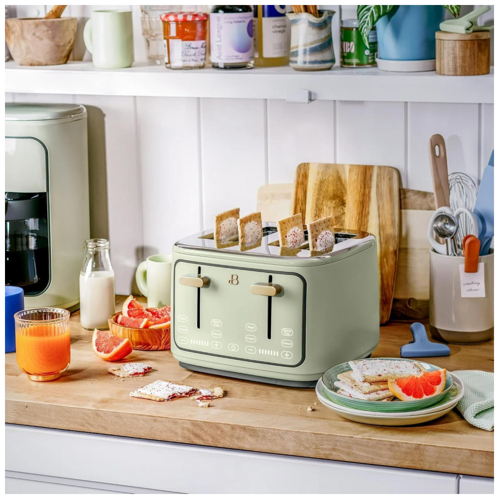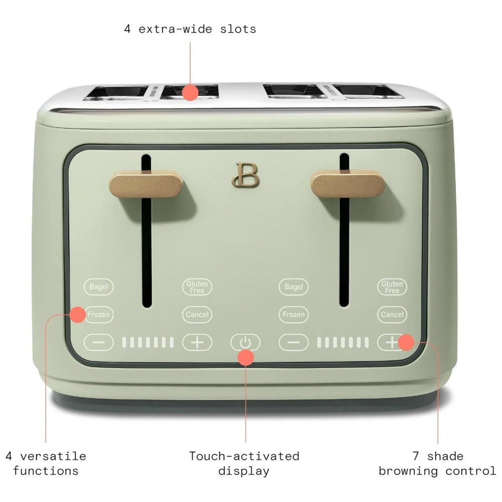 Torradeira elétrica Beautiful 4 fatias verde com display digital touch ranhuras largas autoajustáveis controle de tostagem 1800W 110V