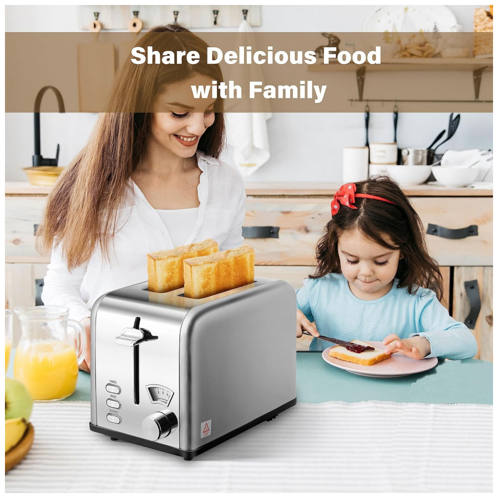 Torradeira Elétrica de 2 Fatias com 5 Níveis de Tostagem 3 Funções 110V 825W YSSOA Cinza
