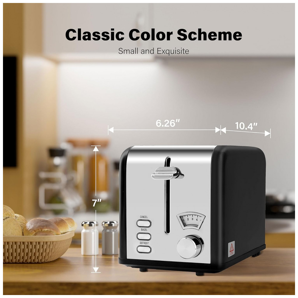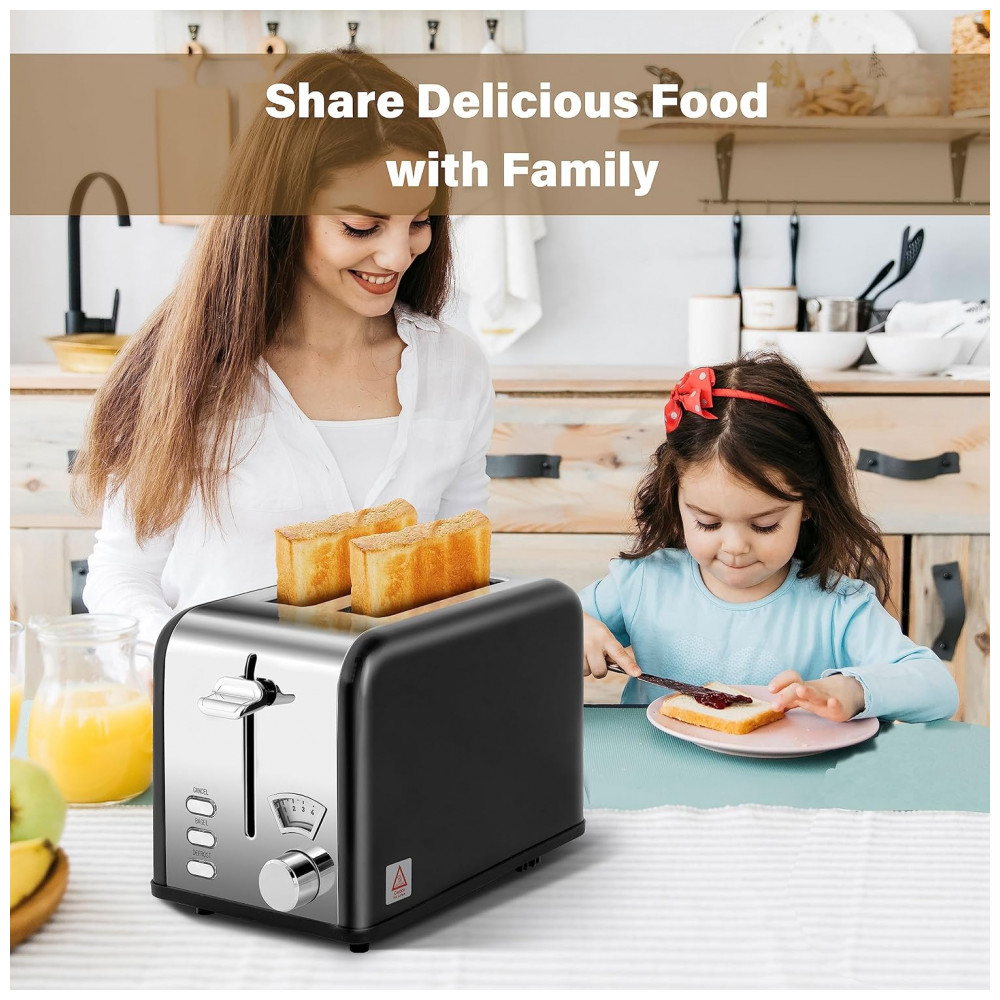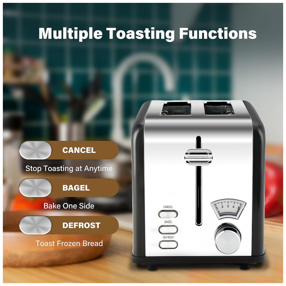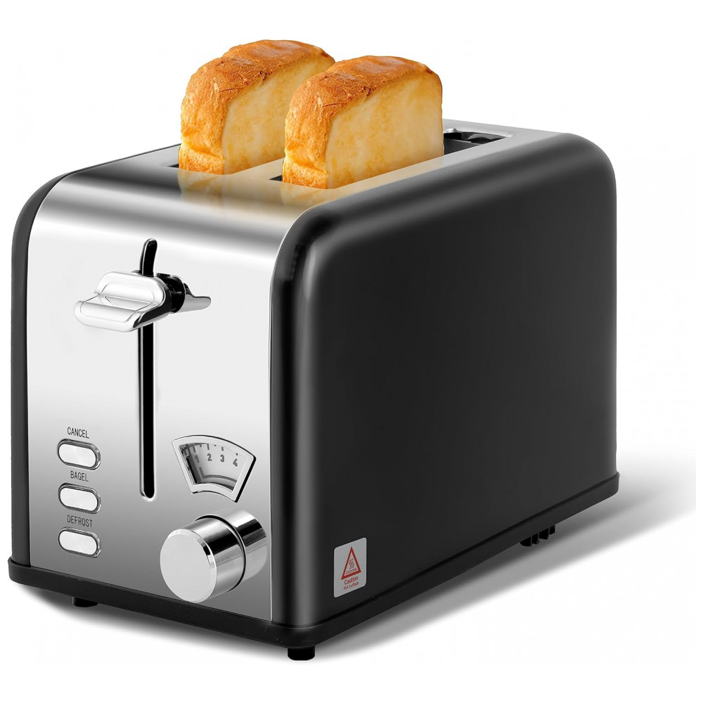 Torradeira Elétrica de 2 Fatias com 5 Níveis de Tostagem 3 Funções 110V 825W YSSOA Preta