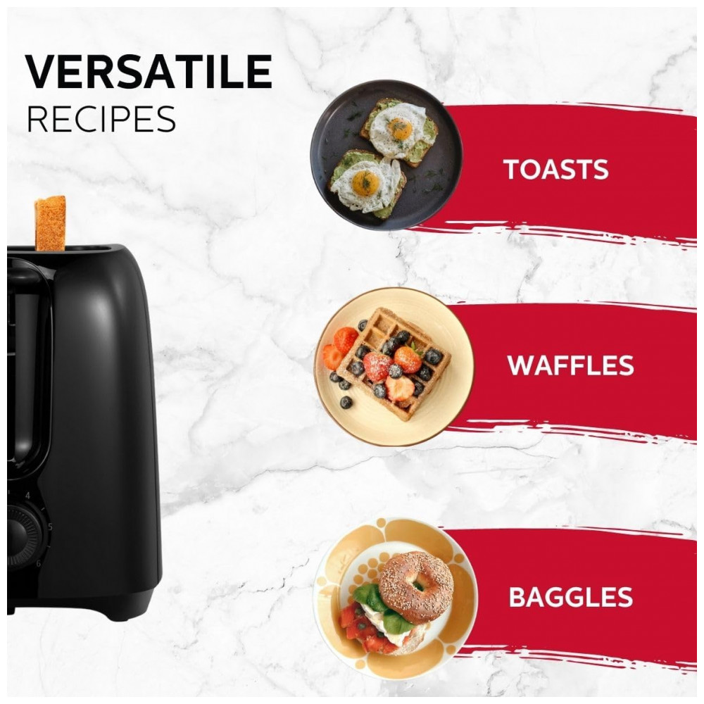 TORRADA PERFEITA: Nossa torradeira elétrica de 2 fatias torrará perfeitamente seu pão, bagels e waffles 6 configurações diferentes para controle de escurecimento variável para que você possa ajustá lo de acordo com o gosto de todos.
