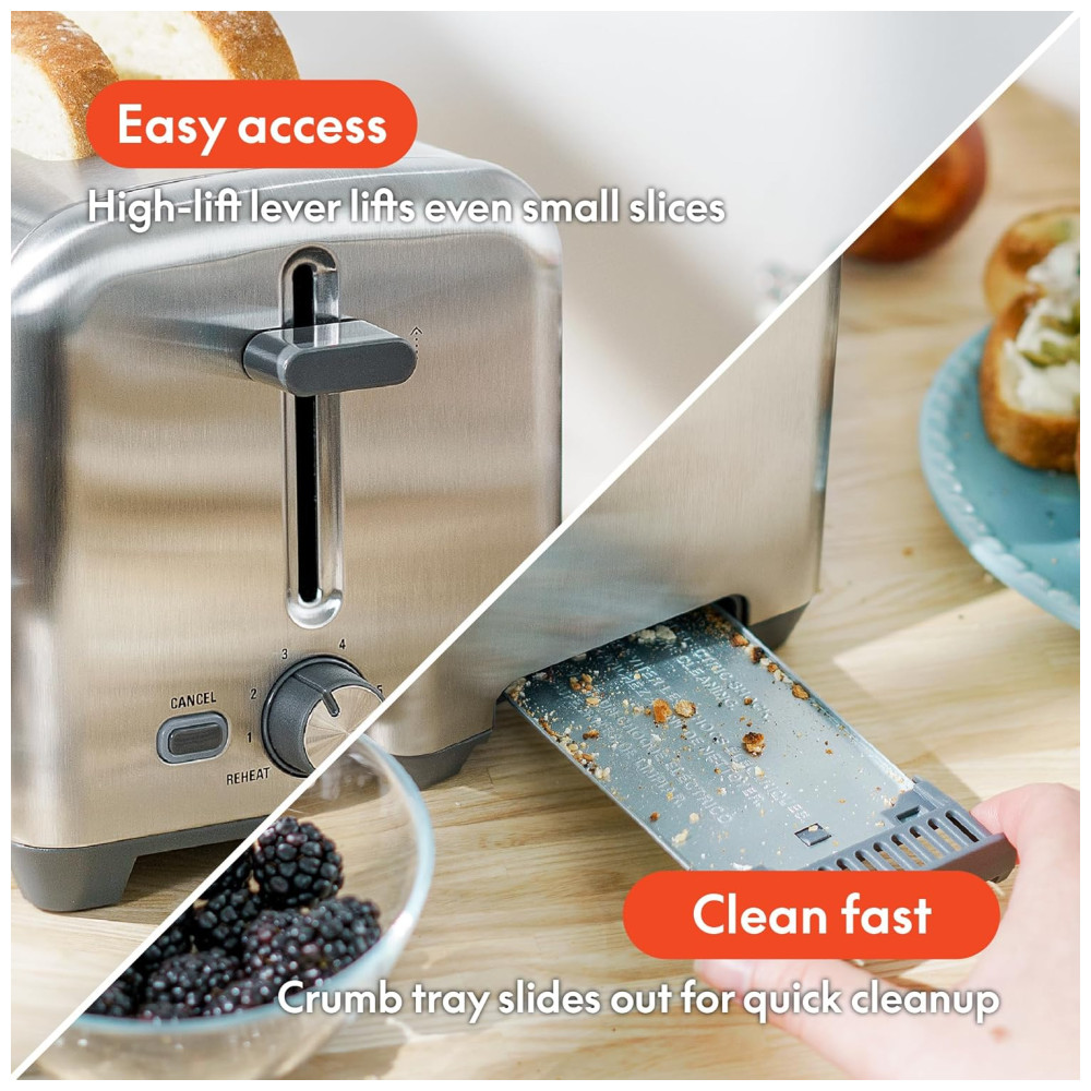 Torradeira de 2 fios o sistema de aquecimento de 750 watts desta torradeira oferece resultados rápidos e personalizáveis Controle de sombra com 6 configurações com função de reaquecimento para escurecimento preciso. Seu elegante e durável acabamento em aço inoxidável escovado certamente iluminará qualquer cozinha