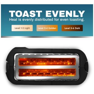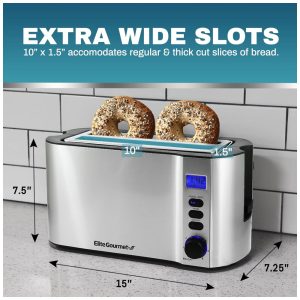 2 ranhuras extra largas de 3, para servir até 4 fatias extra grossas de produtos de pão, como Texas Toast, bagels e pães especiais.