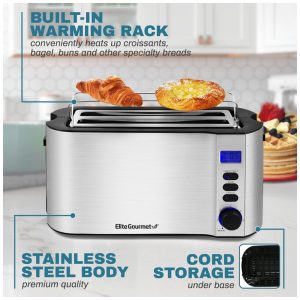 Torradeira Elétrica de 4 Fatias com 6 Níveis de Tostagem 110v ELITE GOURMET ECT4400B Prateado