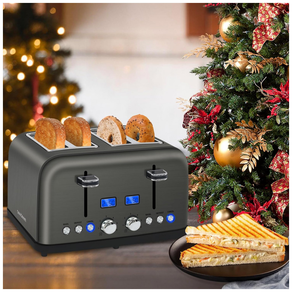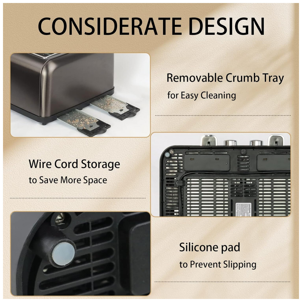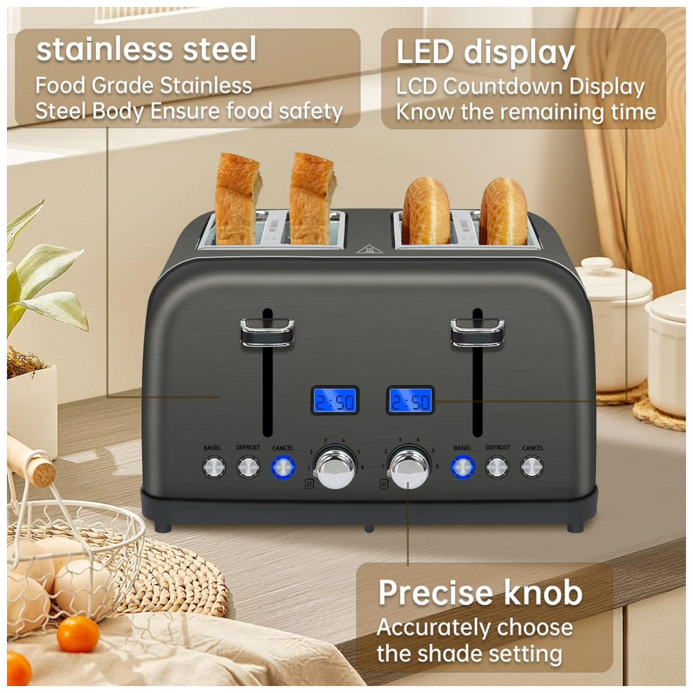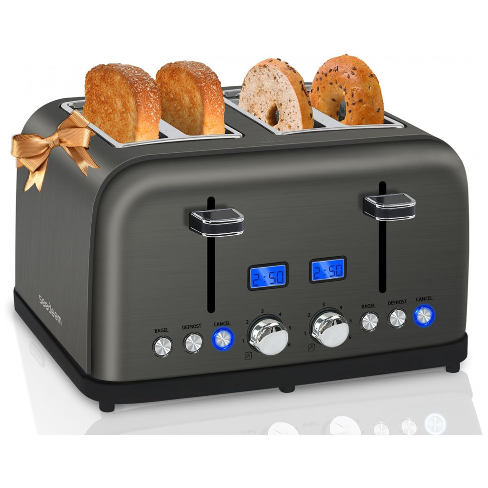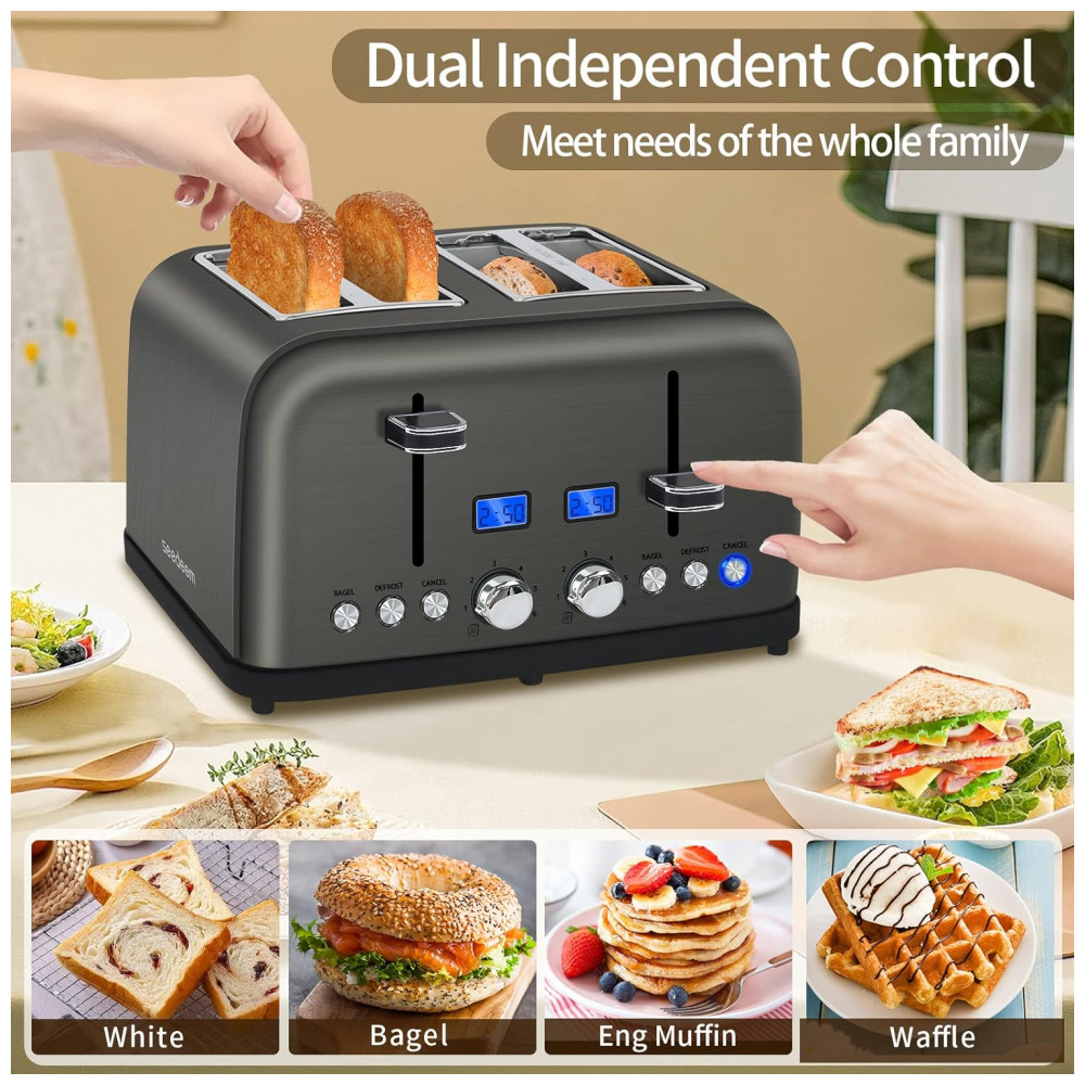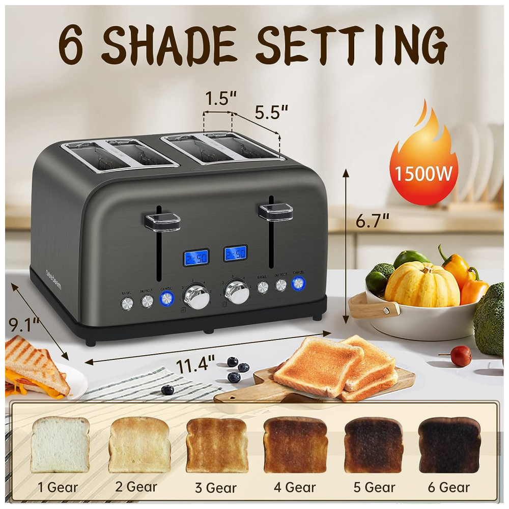 Torradeira Elétrica de 4 Fatias com 6 Níveis de Tostagem e Controle Duplo 110V 1500W SEEDEEM Cinza Escuro