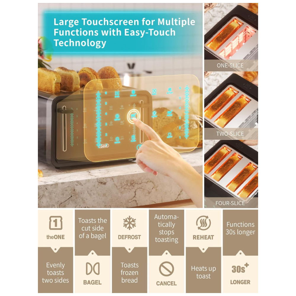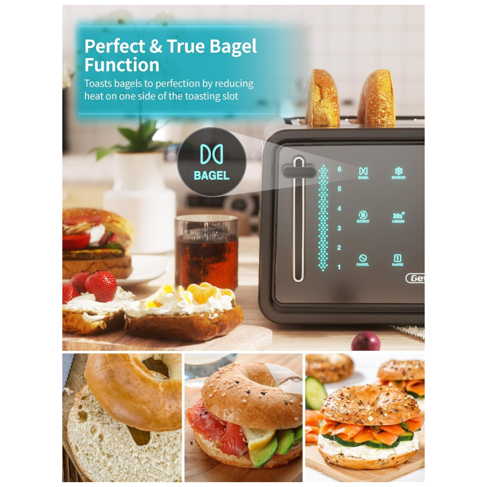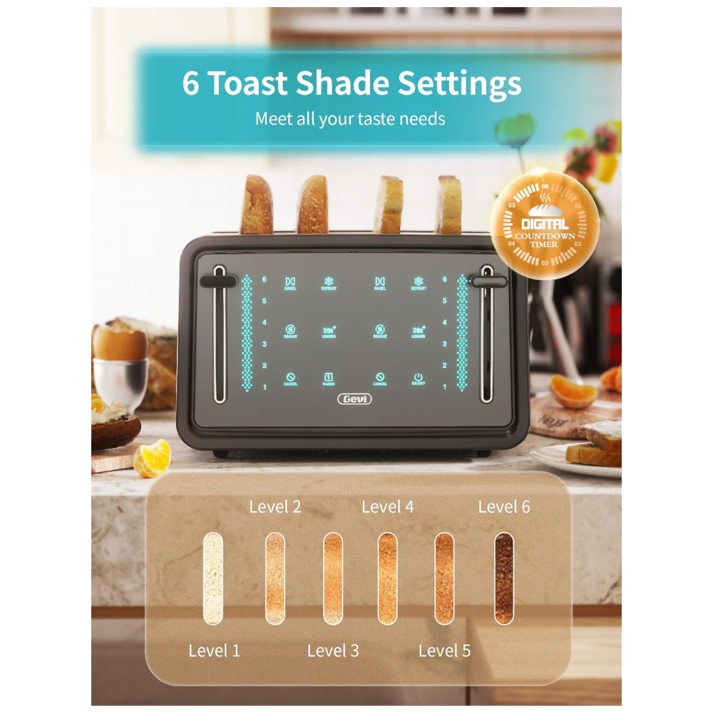 Torradeira Elétrica de 4 Fatias com 7 Níveis de Tostagem Aço Inoxidável 900W 110v GEVI Prateado
