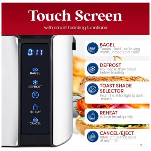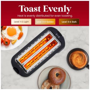 2 SLOTS DE TORRADA EXTRA LARGA DE 3 centímetros: para acomodar até 4 fatias extra grossas de produtos de pão, como Texas Toast, bagels e pães especiais.