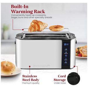 Torradeira Elétrica de 4 Fatias com Cronômetro e Contagem Regressiva 110V Elite Gourmet ECT5322 Prata