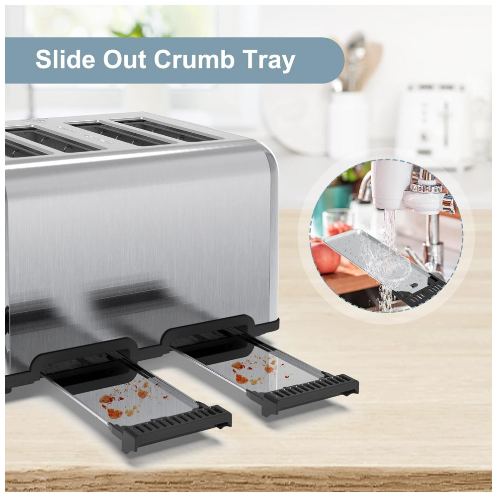 Bandeja de migalhas removível: Esta torradeira preta tem 2 bandejas removíveis para coletar as migalhas e podem ser facilmente removidas e limpas