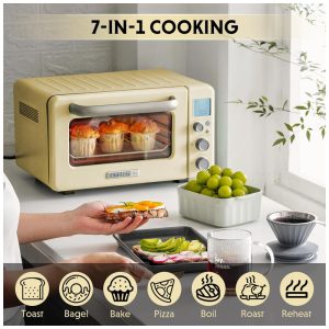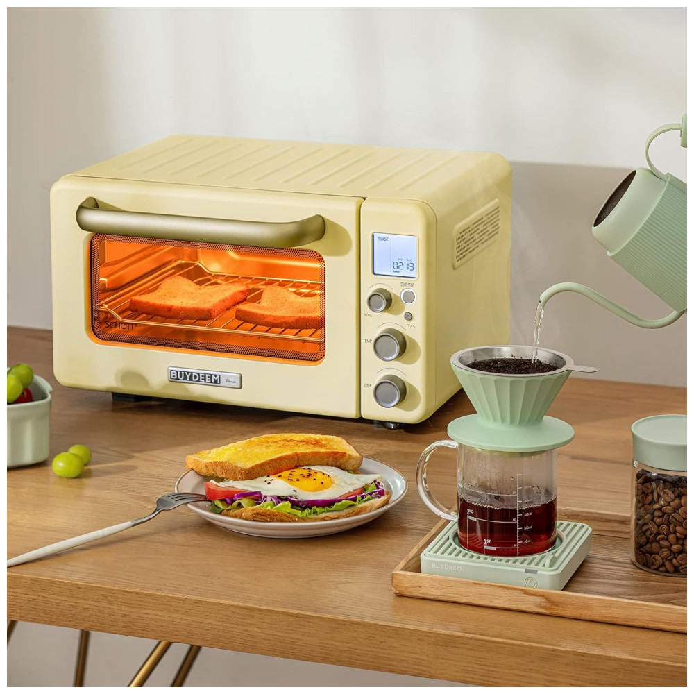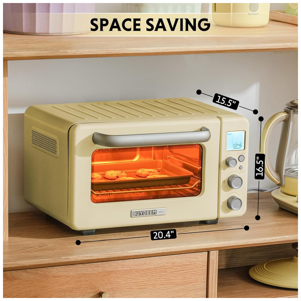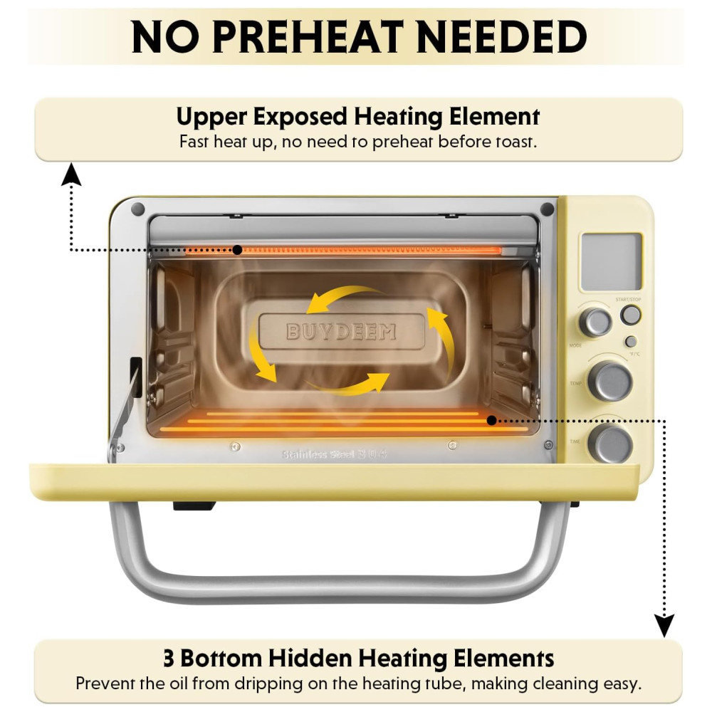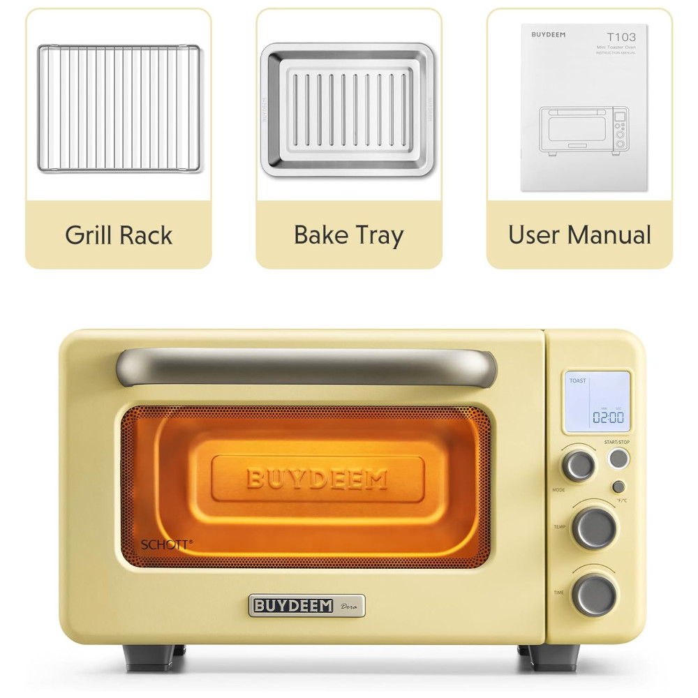 Torradeira Elétrica de Bancada 12 Litros 7 em 1 Inteligente com Grade e Assadeira 110V 1600W BUYDEEM T103 Amarela