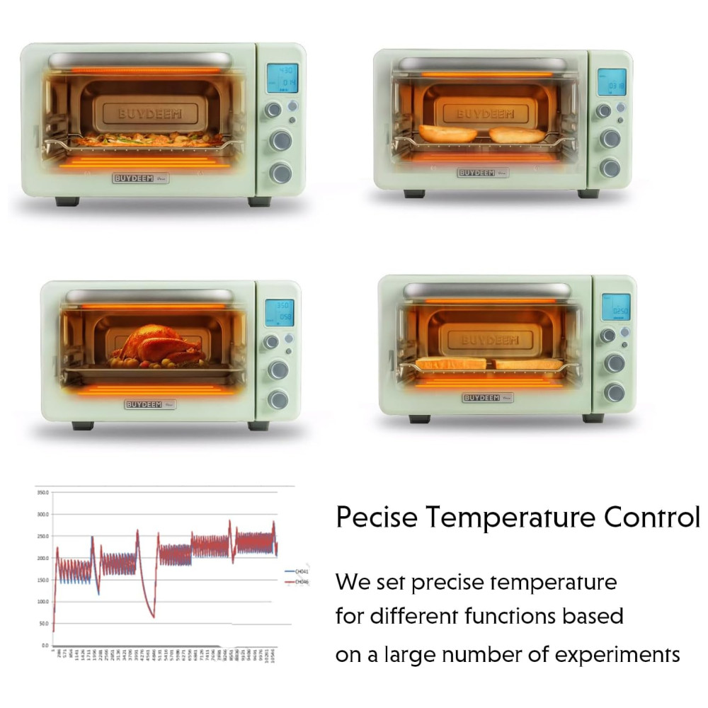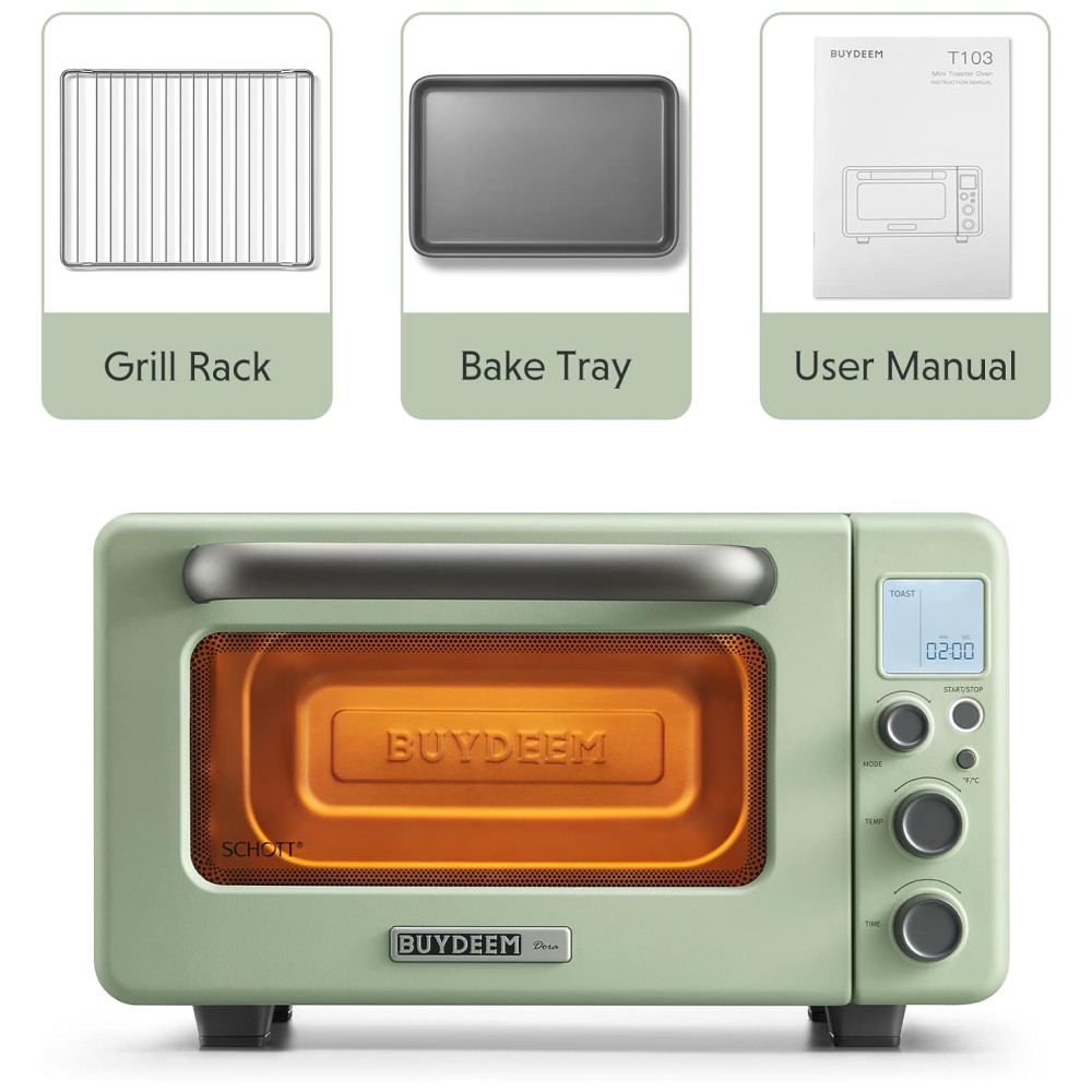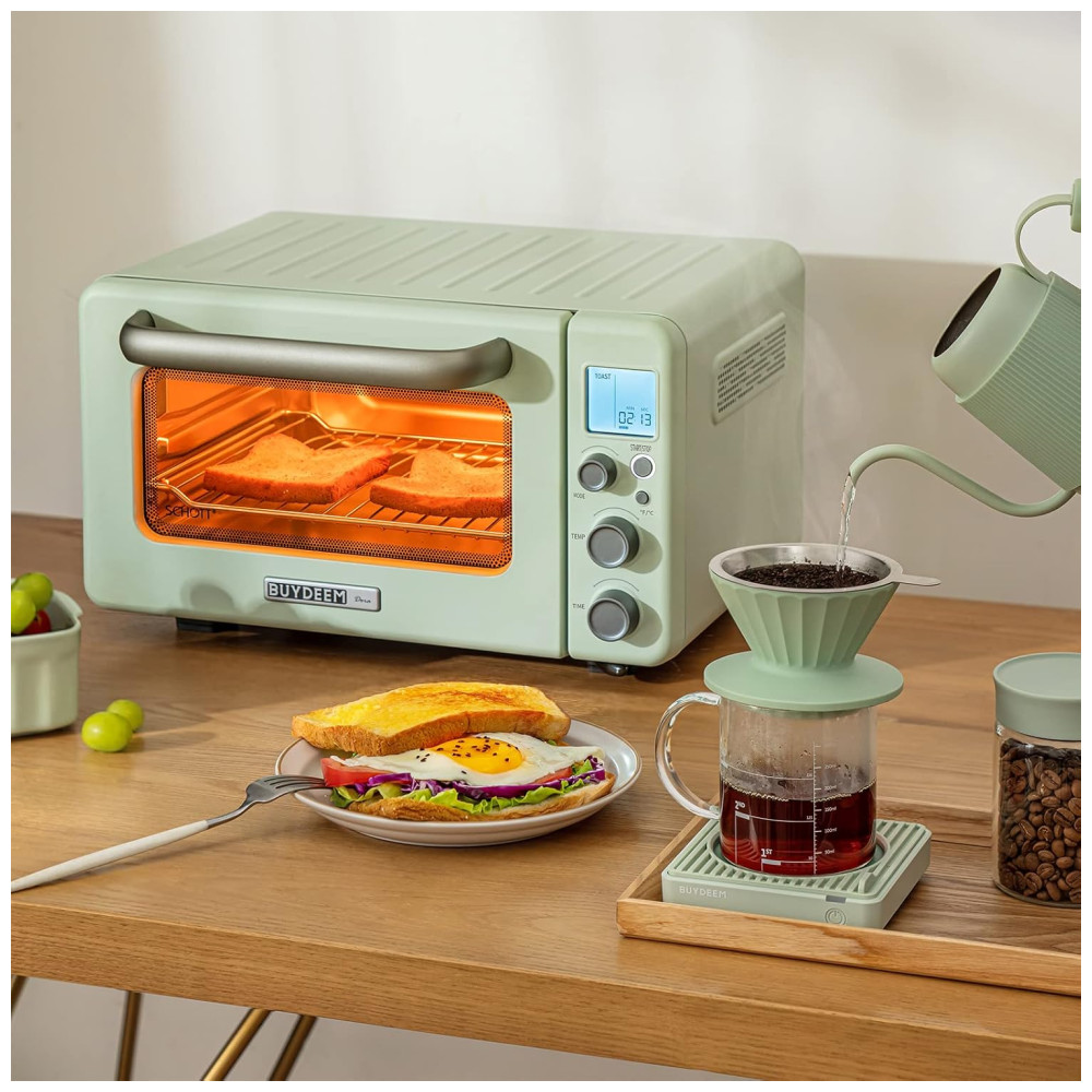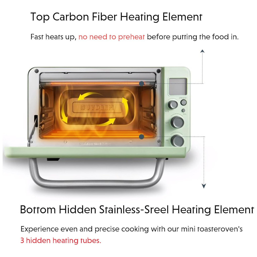 Torradeira Elétrica de Bancada 12 Litros 7 em 1 Inteligente com Grade e Assadeira 110V 1600W BUYDEEM T103 Verde