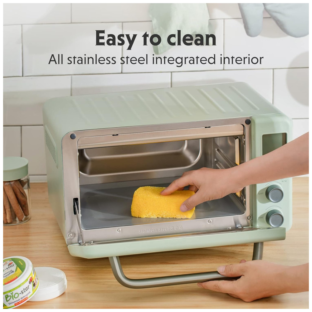 Não se deixe enganar pelo tamanho pequeno O elemento de aquecimento inferior oculto desta minitorradeira oferece um espaço de cavidade maior, permitindo que você cozinhe itens maiores e vários pratos ao mesmo tempo, enquanto torna a limpeza rápida e sem esforço.